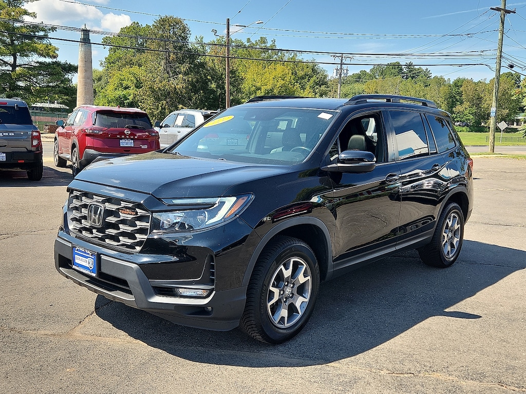 "Black 2022 Honda Passport TrailSport 3.5L V6 24V SOHC i-VTEC 9-Speed Automatic AWDHONDA CERTIFIED PRE-OWNED WARRANTY / CPO 4-Wheel Disc Brakes 4.334 Axle Ratio 7 Speakers A/V remote: CabinControl ABS brakes Air Conditioning Alloy wheels AM/FM radio: SiriusXM Apple CarPlay/Android Auto Auto High-beam Headlights Auto-dimming Rear-View mirror Automatic temperature control Blind Spot Information (BSI) System warning Brake assist Bumpers: body-color Compass Delay-off headlights Driver door bin Driver vanity mirror Driver's Seat Mounted Armrest Dual front impact airbags Dual front side impact airbags Electronic Stability Control Emergency communication system: HondaLink Assist Exterior Parking Camera Rear Forward collision: Collision Mitigation Braking System (CMBS) + FCW mitigation Four wheel independent suspension Front anti-roll bar Front Bucket Seats Front Center Armrest Front dual zone A/C Front fog lights Front reading lights Fully automatic headlights Garage door transmitter: HomeLink Heated door mirrors Heated Front Bucket Seats Heated front seats Illuminated entry Lane departure: Lane Keeping Assist System (LKAS) active Leather-Trimmed Seats w/Orange Stitching Low tire pressure warning Memory seat Navigation system: Honda Satellite-Linked Navigation System Occupant sensing airbag Outside temperature display Overhead airbag Overhead console Panic alarm Passenger door bin Passenger seat mounted armrest Passenger vanity mirror Power door mirrors Power driver seat Power Liftgate Power moonroof Power passenger seat Power steering Power windows Radio data system Radio: 215-Watt Audio System w/7 Speakers Rear air conditioning Rear anti-roll bar Rear reading lights Rear seat center armrest Rear window defroster Rear window wiper Remote keyless entry Roof rack: rails only Security system Speed control Speed-sensing steering Split folding rear seat Spoiler Steering wheel mounted audio controls Tachometer Telescoping steering wheel Tilt steering wheel Traction control Trip computer Turn signal indicator mirrors Variably intermittent wipers Wheels: 18""Machine-Finish Alloy.HondaTrue Certified Details: * Vehicles purchased within New Vehicle Limited Warranty period: extends New Vehicle Limited Warranty to 5 years*/60000 miles*. Honda Care Roadside Assistance for 2 year/100000 miles (whichever occurs first). Up to two complimentary oil changes within the first year of ownership. SiriusXM 90-Day Trial. * Transferable Warranty * Roadside Assistance * Vehicle History * 182 Point Inspection * Powertrain Limited Warranty: 84 Month/100000 Mile (whichever comes first) from original in-service date * Limited Warranty: 24 Month/100000 Mile (whichever comes first) after new car warranty expires or from certified purchase date * Warranty Deductible: $0Awards: * ALG Residual Value Awards Residual Value AwardsSchaller Auto Group has TWO Used Car Locations: Right off Route 9 in New Britain and Route 9 and the Berlin Turnpike in Berlin. Please call 860-826-2023 to confirm this Vehicle's Location. All of our Pre-Owned Vehicles go through our Comprehensive 125 Point Quality Inspection. Every Schaller pre-owned vehicle comes with warranty coverage! With all budgets in mind we now offer Schaller âValue Carsâ starting at $2995 and include a 30 day satisfaction guarantee and all come with a FREE Carfax Vehicle History Report. The Schaller Auto Group is Family Owned and Operated for Over 65 Years and is known for Selling Top Quality Used Vehicles and Standing behind them After the Sale!"
