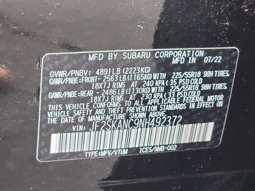 - Front tires: 225/55HR18.0