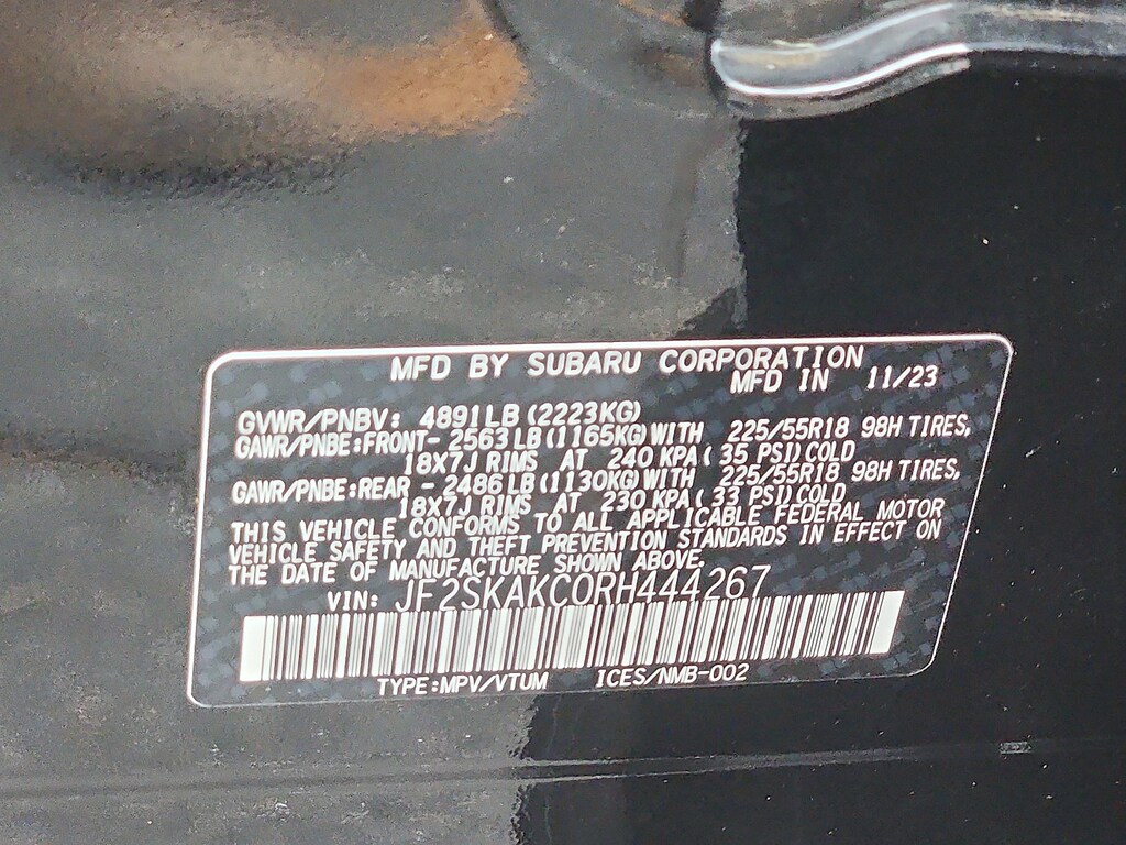 - Front tires: 225/55HR18.0