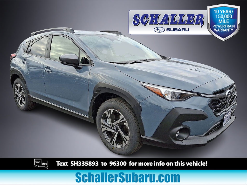 "Recent Arrival! Schaller Auto World is excited to offer this good-looking 2025 Subaru Crosstrek Premium in Of3 Beautifully equipped with All-Weather Package (Dual-Mode Heated Front Seats Heated Power Exterior Mirrors and Windshield De-Icer Wipers) BSD/RCTA & All Wthr Pkg & Pwr Dr. Seat & Pwr Moonrf (10-Way Power Driver's Seat Blind Spot Detection (BSD) Power Moonroof and Rear Cross-Traffic Alert (RCTA) System) 4-Wheel Disc Brakes 6 Speakers ABS brakes Air Conditioning Alloy wheels AM/FM radio: SiriusXM Anti-whiplash front head restraints Auto High-beam Headlights Automatic temperature control Brake assist Bumpers: body-color Cloth Upholstery Driver door bin Driver vanity mirror Dual front impact airbags Dual front side impact airbags Electronic Stability Control Emergency communication system Exterior Parking Camera Rear Four wheel independent suspension Front anti-roll bar Front Bucket Seats Front Center Armrest Front dual zone A/C Front fog lights Front reading lights Fully automatic headlights Illuminated entry Knee airbag Low tire pressure warning Occupant sensing airbag Outside temperature display Overhead airbag Overhead console Panic alarm Passenger door bin Passenger vanity mirror Power door mirrors Power steering Power windows Radio data system Radio: Subaru 11.6""Multimedia Plus System Rear anti-roll bar Rear seat center armrest Rear window defroster Rear window wiper Remote keyless entry Security system Speed control Speed-sensing steering Split folding rear seat Spoiler Steering wheel mounted audio controls Tachometer Telescoping steering wheel Tilt steering wheel Traction control Trip computer Turn signal indicator mirrors Variably intermittent wipers and Wheels: 17""x 7.0""J Machine Finish Aluminum-Alloy!All new Schaller Cars Trucks and SUV's come with our EXCLUSIVE 10 year 150000 mile powertrain warranty! The Schaller Auto Group has been Serving the Communities around Hartford New Britain Berlin and Middletown since 1953. We have Hundreds of new and pre-owned vehicles in stock."