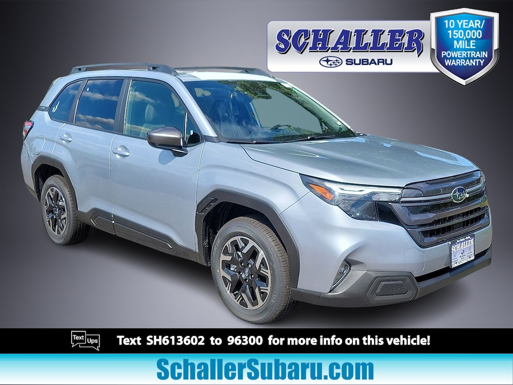 "Recent Arrival! Schaller Auto World is excited to offer this great-looking 2025 Subaru Forester Premium in Ice Silver Metallic Beautifully equipped with Power Rear Gate & Blind Spot Detection w/RCTA (Automatic Emergency Steering Blind-Spot Detection (BSD)/RCTA System and Power Rear Gate) 4-Wheel Disc Brakes 6 Speakers ABS brakes Air Conditioning Alloy wheels AM/FM radio: SiriusXM with 360L Anti-whiplash front head restraints Auto High-beam Headlights Automatic temperature control Brake assist Bumpers: body-color Driver door bin Driver vanity mirror Dual front impact airbags Dual front side impact airbags Electronic Stability Control Emergency communication system: MySubaru Safety (3-year free trial) Exterior Parking Camera Rear Four wheel independent suspension Front anti-roll bar Front Bucket Seats Front Center Armrest Front dual zone A/C Front fog lights Front reading lights Fully automatic headlights Heated door mirrors Heated Front Bucket Seats Heated front seats Illuminated entry Knee airbag Leather steering wheel Low tire pressure warning Occupant sensing airbag Outside temperature display Overhead airbag Overhead console Panic alarm Passenger door bin Passenger vanity mirror Power door mirrors Power driver seat Power moonroof: Panoramic Power steering Power windows Premium Textured Cloth Upholstery Radio data system Radio: Subaru 11.6""Multimedia Plus System Rear anti-roll bar Rear seat center armrest Rear window defroster Rear window wiper Remote keyless entry Security system Speed control Speed-sensing steering Split folding rear seat Spoiler Steering wheel mounted audio controls Tachometer Telescoping steering wheel Tilt steering wheel Traction control Trip computer Variably intermittent wipers and Wheels: 17""x 7.0 J Dark Metallic Aluminum-Alloy!All new Schaller Cars Trucks and SUV's come with our EXCLUSIVE 10 year 150000 mile powertrain warranty! The Schaller Auto Group has been Serving the Communities around Hartford New Britain Berlin and Middletown since 1953. We have Hundreds of new and pre-owned vehicles in stock."