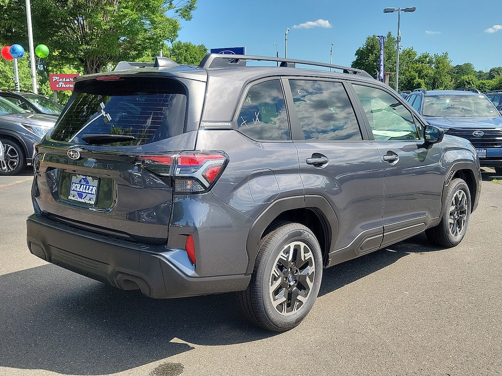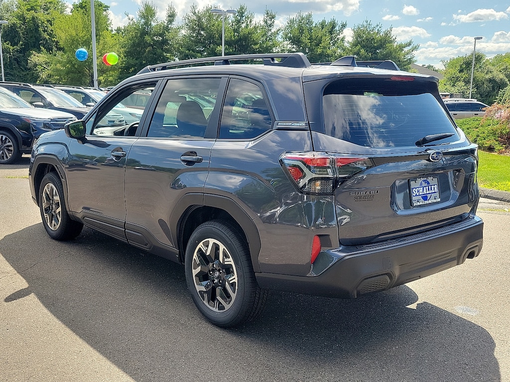 "Recent Arrival! Schaller Auto World is excited to offer this charming 2025 Subaru Forester in Magnetite Gray Metallic Beautifully equipped with Standard Model 4 Speakers 4-Wheel Disc Brakes ABS brakes Air Conditioning Alloy wheels AM/FM radio: SiriusXM Anti-whiplash front head restraints Auto High-beam Headlights Automatic temperature control Brake assist Bumpers: body-color Driver door bin Driver vanity mirror Dual front impact airbags Dual front side impact airbags Electronic Stability Control Exterior Parking Camera Rear Four wheel independent suspension Front anti-roll bar Front Bucket Seats Front Center Armrest Front dual zone A/C Front reading lights Fully automatic headlights Hexagonal Patterned Cloth Upholstery Illuminated entry Knee airbag Low tire pressure warning Occupant sensing airbag Outside temperature display Overhead airbag Overhead console Panic alarm Passenger door bin Passenger vanity mirror Power door mirrors Power steering Power windows Radio data system Radio: Subaru Dual 7.0""Multimedia System Rear anti-roll bar Rear window defroster Rear window wiper Remote keyless entry Security system Speed control Speed-sensing steering Split folding rear seat Spoiler Steering wheel mounted audio controls Tachometer Telescoping steering wheel Tilt steering wheel Traction control Trip computer Variably intermittent wipers and Wheels: 17""x 7.0 J Dark Metallic Aluminum-Alloy!All new Schaller Cars Trucks and SUV's come with our EXCLUSIVE 10 year 150000 mile powertrain warranty! The Schaller Auto Group has been Serving the Communities around Hartford New Britain Berlin and Middletown since 1953. We have Hundreds of new and pre-owned vehicles in stock."