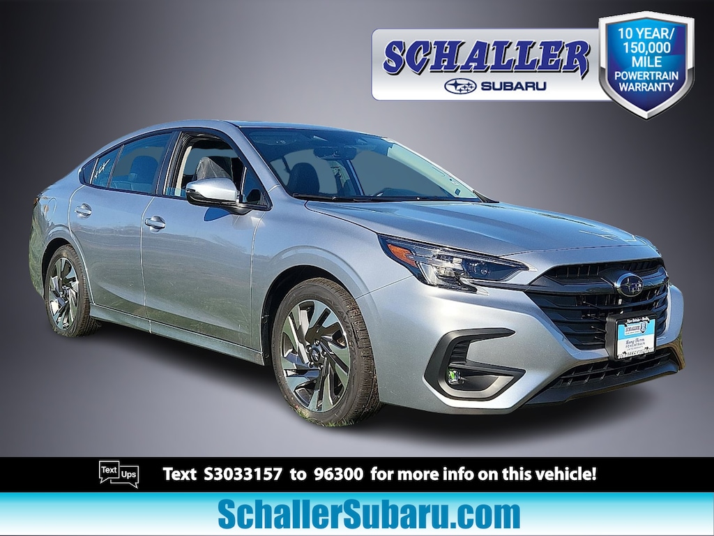 "Schaller Auto World is proud to offer this terrific 2025 Subaru Legacy Limited in Ice Silver Metallic Beautifully equipped with Standard Model 12 Speakers 4-Wheel Disc Brakes ABS brakes Air Conditioning Alloy wheels AM/FM radio: SiriusXM with 360L Anti-whiplash front head restraints Apple CarPlay & Android Auto Auto High-beam Headlights Auto-dimming Rear-View mirror Automatic temperature control Brake assist Bumpers: body-color Compass Driver door bin Driver vanity mirror Dual front impact airbags Dual front side impact airbags Electronic Stability Control Emergency communication system: MySubaru Safety Plus (3-year free trial included) Exterior Parking Camera Rear Four wheel independent suspension Front anti-roll bar Front Bucket Seats Front Center Armrest w/Storage Front dual zone A/C Front fog lights Front reading lights Fully automatic headlights Garage door transmitter: HomeLink harman/kardon® Speakers Heated door mirrors Heated Front Bucket Seats Heated front seats Heated rear seats Heated steering wheel HVAC memory Illuminated entry Knee airbag Leather steering wheel Low tire pressure warning Memory seat Navigation system: TomTom Navigation w/what3words Occupant sensing airbag Outside temperature display Overhead airbag Overhead console Panic alarm Passenger door bin Passenger vanity mirror Perforated Leather-Trimmed Upholstery Power door mirrors Power driver seat Power moonroof Power passenger seat Power steering Power windows Radio: Subaru 11.6""Multimedia System w/Navigation Rear anti-roll bar Rear seat center armrest Rear window defroster Remote keyless entry Security system Speed control Speed-sensing steering Split folding rear seat Steering wheel mounted audio controls Tachometer Telescoping steering wheel Tilt steering wheel Traction control Trip computer Turn signal indicator mirrors Variably intermittent wipers and Wheels: 18""x 7.5J Gray Mach Finish Aluminum-Alloy!All new Schaller Cars Trucks and SUV's come with our EXCLUSIVE 10 year 150000 mile powertrain warranty! The Schaller Auto Group has been Serving the Communities around Hartford New Britain Berlin and Middletown since 1953. We have Hundreds of new and pre-owned vehicles in stock."