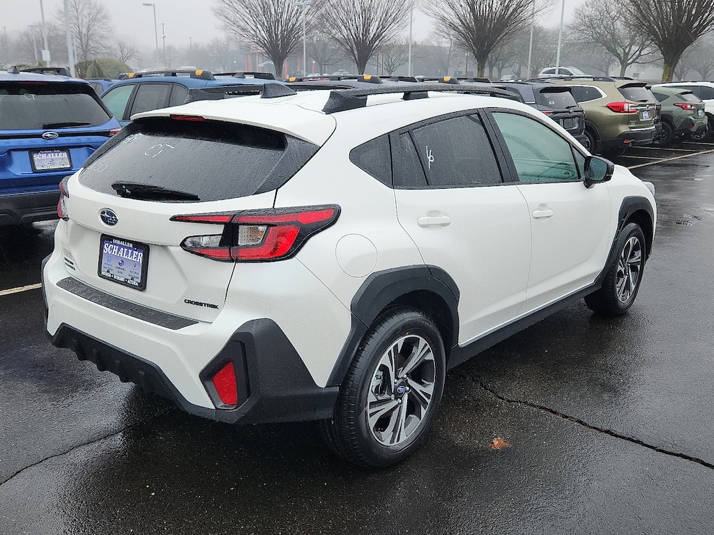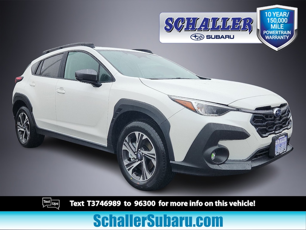 "Schaller Auto World is honored to offer this good-looking 2026 Subaru Crosstrek Premium in Crystal White Pearl Beautifully equipped with All-Weather Package (Dual-Mode Heated Front Seats Heated Power Exterior Mirrors and Windshield De-Icer Wipers) BSD/RCTA and All Weather Package and Power Driver Seat and Power Moonroof (10-Way Power Driver's Seat Blind Spot Detection (BSD) Power Moonroof and Rear Cross-Traffic Alert (RCTA) System) 4-Wheel Disc Brakes 6 Speakers ABS brakes Air Conditioning All-Weather Floor Liners Alloy wheels AM/FM radio: SiriusXM with 360L Anti-whiplash front head restraints Auto High-beam Headlights Automatic temperature control Brake assist Bumpers: body-color Cloth Upholstery Driver door bin Driver vanity mirror Dual front impact airbags Dual front side impact airbags Electronic Stability Control Emergency communication system: MySubaru Companion (5-years free) Exterior Parking Camera Rear Four wheel independent suspension Front anti-roll bar Front Bucket Seats Front Center Armrest Front dual zone A/C Front fog lights Front reading lights Fully automatic headlights Illuminated entry Knee airbag Low tire pressure warning Occupant sensing airbag Outside temperature display Overhead airbag Overhead console Panic alarm Passenger door bin Passenger vanity mirror Power door mirrors Power steering Power windows Radio data system Radio: Subaru 11.6""Multimedia Plus System Rear anti-roll bar Rear Bumper Cover Rear seat center armrest Rear side impact airbag Rear window defroster Rear window wiper Remote keyless entry Security system Speed control Speed-sensing steering Split folding rear seat Spoiler Steering wheel mounted audio controls Tachometer Telescoping steering wheel Tilt steering wheel Traction control Trip computer Turn signal indicator mirrors Variably intermittent wipers Wheel Locks - Alloy and Wheels: 17""x 7.0""J Machine Finish Aluminum-Alloy!All new Schaller Cars Trucks and SUV's come with our EXCLUSIVE 10 year 150000 mile powertrain warranty! The Schaller Auto Group has been Serving the Communities around Hartford New Britain Berlin and Middletown since 1953. We have Hundreds of new and pre-owned vehicles in stock."