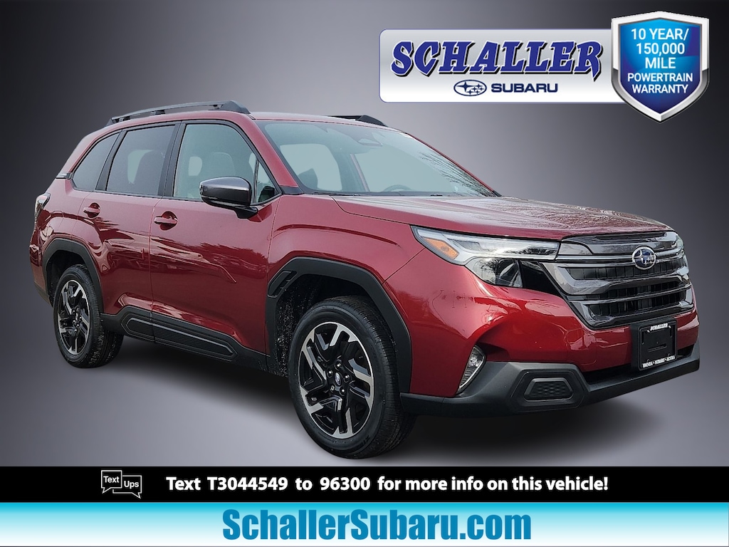 "Schaller Auto World is honored to offer this fantastic-looking 2026 Subaru Forester Limited in Crimson Red Pearl Beautifully equipped with Harman/Kardon Speaker System and Navigation and Reverse Automatic Braking (Radio: Subaru 11.6""Multimedia Navigation System and Reverse Automatic Braking (RAB) System) 4-Wheel Disc Brakes 6 Speakers ABS brakes Air Conditioning Alloy wheels AM/FM radio: SiriusXM with 360L Anti-whiplash front head restraints Auto High-beam Headlights Auto-Dimming Exterior Mirror with Approach Light Auto-Dimming Mirror with Compass and HomeLink Automatic temperature control Brake assist Bumpers: body-color Cargo Tray Driver door bin Driver vanity mirror Dual front impact airbags Dual front side impact airbags Electronic Stability Control Emergency communication system: MySubaru Companion (5-years free) Exterior Parking Camera Rear Four wheel independent suspension Front anti-roll bar Front Bucket Seats Front Center Armrest Front dual zone A/C Front fog lights Front reading lights Fully automatic headlights Heated door mirrors Heated Front Bucket Seats Heated front seats Heated steering wheel Illuminated entry Knee airbag Leather steering wheel Low tire pressure warning Occupant sensing airbag Outside temperature display Overhead airbag Overhead console Panic alarm Passenger door bin Passenger vanity mirror Perforated Leather-Trimmed Upholstery Power door mirrors Power driver seat Power Liftgate Power moonroof: Panoramic Power passenger seat Power steering Power windows Radio data system Radio: Subaru 11.6""Multimedia Plus System Rain sensing wipers Rear anti-roll bar Rear Bumper Cover Rear seat center armrest Rear Seatback Protector Rear window defroster Rear window wiper Remote keyless entry Security system Speed control Speed-sensing steering Split folding rear seat Spoiler Steering wheel mounted audio controls Tachometer Telescoping steering wheel Tilt steering wheel Traction control Trip computer Turn signal indicator mirrors Utility Hook (2-Pack) Variably intermittent wipers Wheel Locks - Alloy and Wheels: 18""x 7.0 J Dark Metallic Aluminum-Alloy!All new Schaller Cars Trucks and SUV's come with our EXCLUSIVE 10 year 150000 mile powertrain warranty! The Schaller Auto Group has been Serving the Communities around Hartford New Britain Berlin and Middletown since 1953. We have Hundreds of new and pre-owned vehicles in stock."