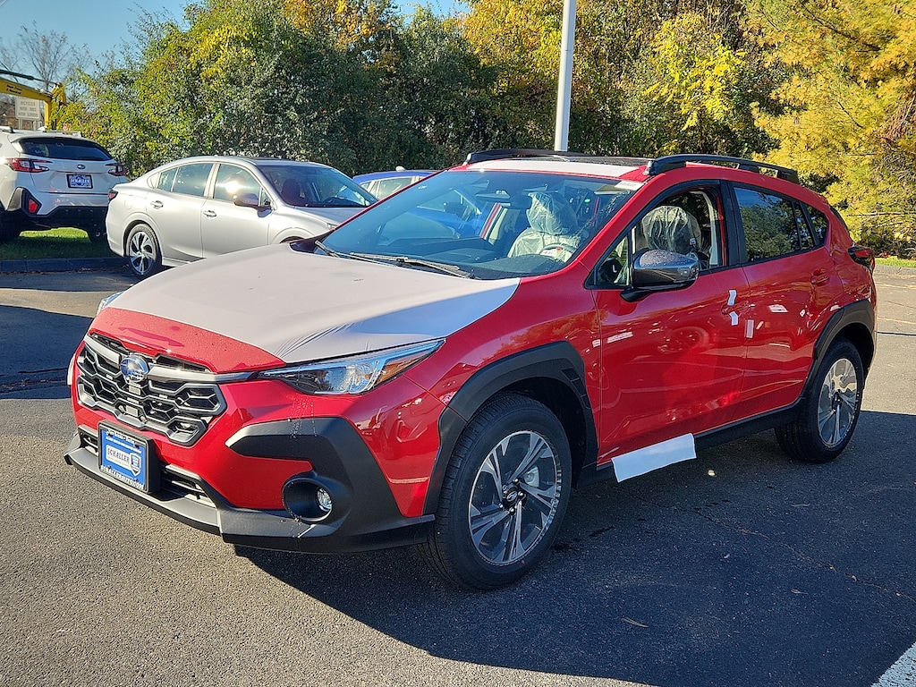 "Recent Arrival! Schaller Auto World is very proud to offer this fantastic 2025 Subaru Crosstrek Premium in Pure Red Beautifully equipped with All-Weather Package (Dual-Mode Heated Front Seats Heated Power Exterior Mirrors and Windshield De-Icer Wipers) BSD/RCTA & All Wthr Pkg & Pwr Dr. Seat & Pwr Moonrf (10-Way Power Driver's Seat Blind Spot Detection (BSD) Power Moonroof and Rear Cross-Traffic Alert (RCTA) System) 4-Wheel Disc Brakes 6 Speakers ABS brakes Air Conditioning All-Weather Floor Liners Alloy wheels AM/FM radio: SiriusXM Anti-whiplash front head restraints Auto High-beam Headlights Automatic temperature control Brake assist Bumpers: body-color Cloth Upholstery Driver door bin Driver vanity mirror Dual front impact airbags Dual front side impact airbags Electronic Stability Control Emergency communication system Exterior Parking Camera Rear Four wheel independent suspension Front anti-roll bar Front Bucket Seats Front Center Armrest Front dual zone A/C Front fog lights Front reading lights Fully automatic headlights Illuminated entry Knee airbag Low tire pressure warning Occupant sensing airbag Outside temperature display Overhead airbag Overhead console Panic alarm Passenger door bin Passenger vanity mirror Power door mirrors Power steering Power windows Radio data system Radio: Subaru 11.6""Multimedia Plus System Rear anti-roll bar Rear Bumper Cover Rear Gate Light Rear seat center armrest Rear Seatback Protector Rear window defroster Rear window wiper Remote keyless entry Security system Speed control Speed-sensing steering Split folding rear seat Spoiler Steering wheel mounted audio controls Tachometer Telescoping steering wheel Tilt steering wheel Traction control Trip computer Turn signal indicator mirrors Variably intermittent wipers Wheel Locks - Alloy and Wheels: 17""x 7.0""J Machine Finish Aluminum-Alloy!All new Schaller Cars Trucks and SUV's come with our EXCLUSIVE 10 year 150000 mile powertrain warranty! The Schaller Auto Group has been Serving the Communities around Hartford New Britain Berlin and Middletown since 1953. We have Hundreds of new and pre-owned vehicles in stock."