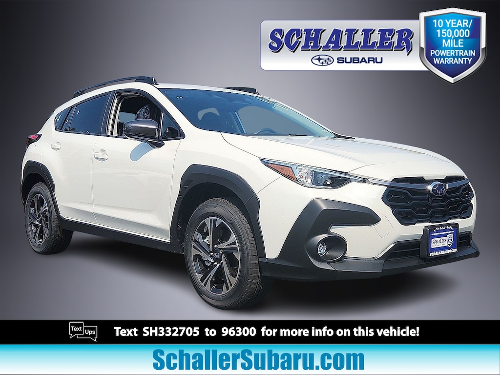 "Schaller Auto World is pumped up to offer this good-looking 2025 Subaru Crosstrek Premium in Crystal White Pearl Beautifully equipped with Standard Model 4-Wheel Disc Brakes 6 Speakers ABS brakes Air Conditioning Alloy wheels AM/FM radio: SiriusXM Anti-whiplash front head restraints Auto High-beam Headlights Automatic temperature control Brake assist Bumpers: body-color Cloth Upholstery Driver door bin Driver vanity mirror Dual front impact airbags Dual front side impact airbags Electronic Stability Control Emergency communication system Exterior Parking Camera Rear Four wheel independent suspension Front anti-roll bar Front Bucket Seats Front Center Armrest Front dual zone A/C Front fog lights Front reading lights Fully automatic headlights Illuminated entry Knee airbag Low tire pressure warning Occupant sensing airbag Outside temperature display Overhead airbag Overhead console Panic alarm Passenger door bin Passenger vanity mirror Power door mirrors Power steering Power windows Radio data system Radio: Subaru 11.6""Multimedia Plus System Rear anti-roll bar Rear seat center armrest Rear window defroster Rear window wiper Remote keyless entry Security system Speed control Speed-sensing steering Split folding rear seat Spoiler Steering wheel mounted audio controls Tachometer Telescoping steering wheel Tilt steering wheel Traction control Trip computer Turn signal indicator mirrors Variably intermittent wipers and Wheels: 17""x 7.0""J Machine Finish Aluminum-Alloy!All new Schaller Cars Trucks and SUV's come with our EXCLUSIVE 10 year 150000 mile powertrain warranty! The Schaller Auto Group has been Serving the Communities around Hartford New Britain Berlin and Middletown since 1953. We have Hundreds of new and pre-owned vehicles in stock."