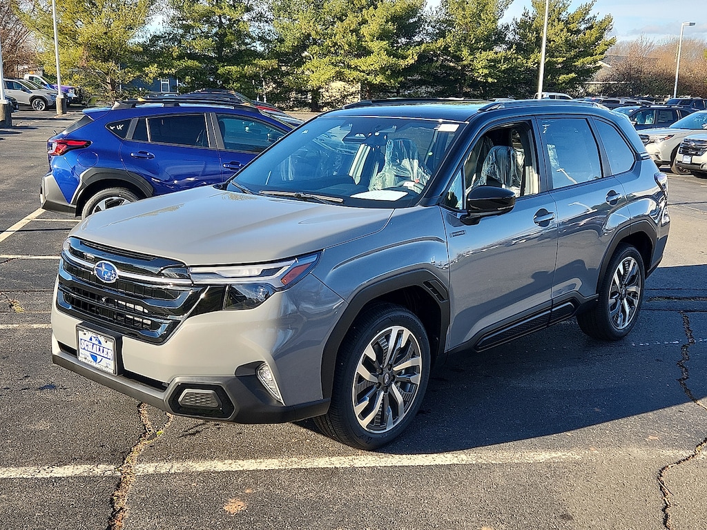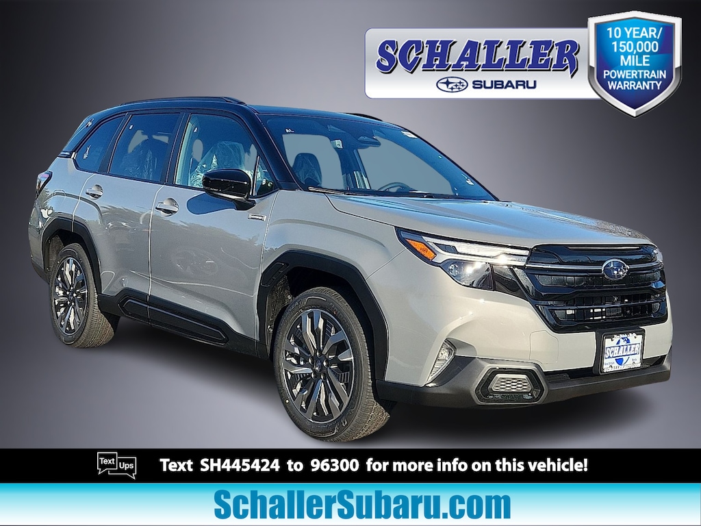 "Recent Arrival! Schaller Auto World is very proud to offer this outstanding-looking 2025 Subaru Forester Hybrid Touring in River Rock/Crystal Black Beautifully equipped with Standard Model 11 Speakers 4-Wheel Disc Brakes ABS brakes Air Conditioning Alloy wheels AM/FM radio: SiriusXM with 360L Anti-whiplash front head restraints Auto High-beam Headlights Auto-Dimming Exterior Mirror with Approach Light Automatic temperature control Brake assist Bumpers: body-color Compass Driver door bin Driver vanity mirror Dual front impact airbags Dual front side impact airbags Electronic Stability Control Emergency communication system: MySubaru Safety (3-year free trial) Exterior Parking Camera Rear Four wheel independent suspension Front anti-roll bar Front Bucket Seats Front Center Armrest Front dual zone A/C Front fog lights Front reading lights Fully automatic headlights harman/kardon® Speakers Heated and Ventilated Front Bucket Seats Heated door mirrors Heated front seats Heated rear seats Heated steering wheel HVAC memory Illuminated entry Knee airbag LED Upgrade Low tire pressure warning Memory seat Navigation system: TomTom Navigation w/what3words Occupant sensing airbag Outside temperature display Overhead airbag Overhead console Panic alarm Passenger door bin Passenger vanity mirror Perforated Leather-Trimmed Upholstery Power door mirrors Power driver seat Power Liftgate Power moonroof: Panoramic Power passenger seat Power steering Power windows Radio data system Radio: Subaru 11.6""Multimedia Navigation System Rear anti-roll bar Rear Bumper Cover Rear seat center armrest Rear Seatback Protector Rear window defroster Rear window wiper Remote keyless entry Security system Speed control Speed-sensing steering Split folding rear seat Spoiler Steering wheel mounted audio controls Sunshade - 2nd Row Tachometer Telescoping steering wheel Tilt steering wheel Traction control Trip computer Turn signal indicator mirrors Variably intermittent wipers Ventilated front seats Wheel Lug Nut and Lock Set - Black and Wheels: 19""x 7.5 J Dark Gray Aluminum-Alloy!All new Schaller Cars Trucks and SUV's come with our EXCLUSIVE 10 year 150000 mile powertrain warranty! The Schaller Auto Group has been Serving the Communities around Hartford New Britain Berlin and Middletown since 1953. We have Hundreds of new and pre-owned vehicles in stock."