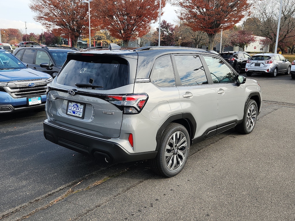 "Schaller Auto World is proud to offer this wonderful 2025 Subaru Forester Hybrid Touring in River Rock/Crystal Black Beautifully equipped with Standard Model 11 Speakers 4-Wheel Disc Brakes ABS brakes Air Conditioning Alloy wheels AM/FM radio: SiriusXM with 360L Anti-whiplash front head restraints Auto High-beam Headlights Automatic temperature control Brake assist Bumpers: body-color Compass Driver door bin Driver vanity mirror Dual front impact airbags Dual front side impact airbags Electronic Stability Control Emergency communication system: MySubaru Safety (3-year free trial) Exterior Parking Camera Rear Four wheel independent suspension Front anti-roll bar Front Bucket Seats Front Center Armrest Front dual zone A/C Front fog lights Front reading lights Fully automatic headlights harman/kardon® Speakers Heated and Ventilated Front Bucket Seats Heated door mirrors Heated front seats Heated rear seats Heated steering wheel HVAC memory Illuminated entry Knee airbag Low tire pressure warning Memory seat Navigation system: TomTom Navigation w/what3words Occupant sensing airbag Outside temperature display Overhead airbag Overhead console Panic alarm Passenger door bin Passenger vanity mirror Perforated Leather-Trimmed Upholstery Power door mirrors Power driver seat Power Liftgate Power moonroof: Panoramic Power passenger seat Power steering Power windows Radio data system Radio: Subaru 11.6""Multimedia Navigation System Rear anti-roll bar Rear seat center armrest Rear window defroster Rear window wiper Remote keyless entry Security system Speed control Speed-sensing steering Split folding rear seat Spoiler Steering wheel mounted audio controls Tachometer Telescoping steering wheel Tilt steering wheel Traction control Trip computer Turn signal indicator mirrors Variably intermittent wipers Ventilated front seats and Wheels: 19""x 7.5 J Dark Gray Aluminum-Alloy!All new Schaller Cars Trucks and SUV's come with our EXCLUSIVE 10 year 150000 mile powertrain warranty! The Schaller Auto Group has been Serving the Communities around Hartford New Britain Berlin and Middletown since 1953. We have Hundreds of new and pre-owned vehicles in stock."