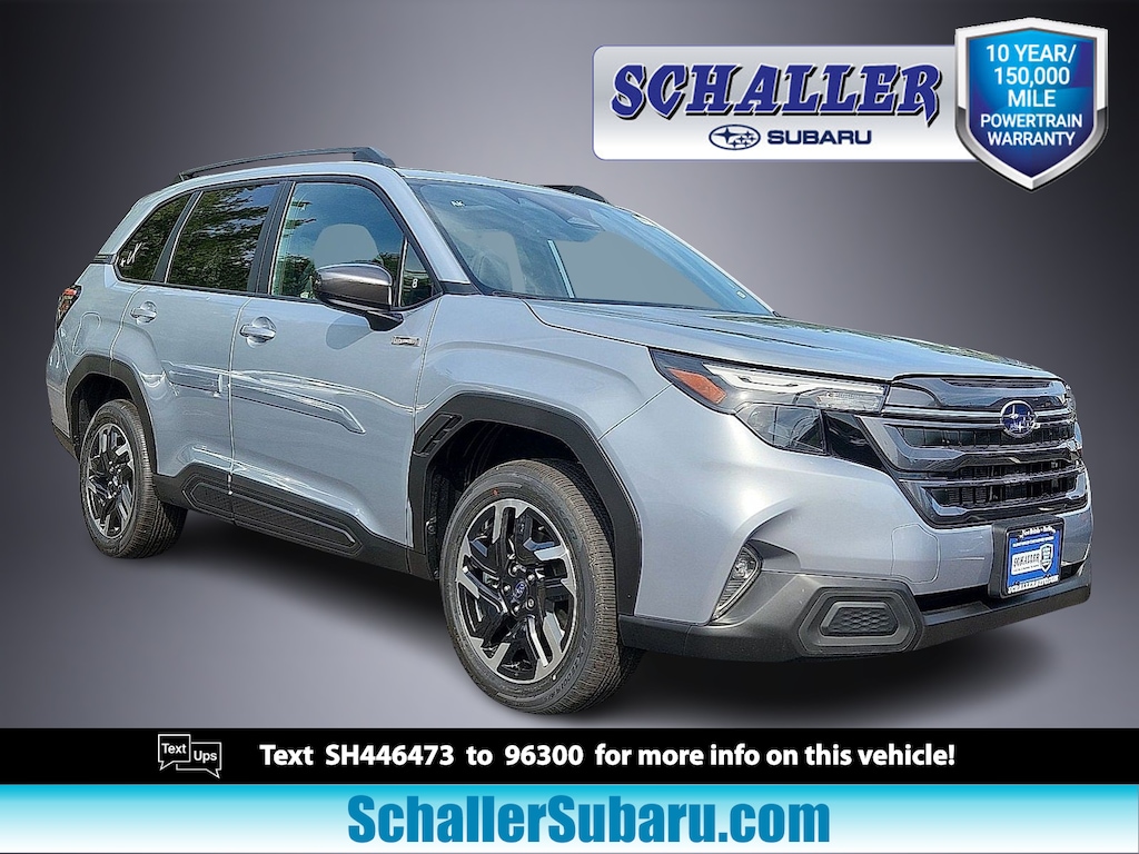 "Recent Arrival! Schaller Auto World is delighted to offer this attractive-looking 2025 Subaru Forester Hybrid Premium in Ice Silver Metallic Beautifully equipped with Standard Model 4-Wheel Disc Brakes 6 Speakers ABS brakes Air Conditioning Alloy wheels AM/FM radio: SiriusXM with 360L Anti-whiplash front head restraints Auto High-beam Headlights Automatic temperature control Brake assist Bumpers: body-color Compass Driver door bin Driver vanity mirror Dual front impact airbags Dual front side impact airbags Electronic Stability Control Emergency communication system: MySubaru Safety (3-year free trial) Exterior Parking Camera Rear Four wheel independent suspension Front anti-roll bar Front Bucket Seats Front Center Armrest Front dual zone A/C Front fog lights Front reading lights Fully automatic headlights Heated door mirrors Heated Front Bucket Seats Heated front seats Illuminated entry Knee airbag Low tire pressure warning Navigation system: TomTom Navigation w/what3words Occupant sensing airbag Outside temperature display Overhead airbag Overhead console Panic alarm Passenger door bin Passenger vanity mirror Power door mirrors Power driver seat Power Liftgate Power moonroof: Panoramic Power steering Power windows Premium Cloth Upholstery Radio data system Radio: Subaru 11.6""Multimedia Navigation System Rear anti-roll bar Rear seat center armrest Rear window defroster Rear window wiper Remote keyless entry Security system Speed control Speed-sensing steering Split folding rear seat Spoiler Steering wheel mounted audio controls Tachometer Telescoping steering wheel Tilt steering wheel Traction control Trip computer Variably intermittent wipers and Wheels: 18""x 7.0 J Dark Metallic Aluminum-Alloy!All new Schaller Cars Trucks and SUV's come with our EXCLUSIVE 10 year 150000 mile powertrain warranty! The Schaller Auto Group has been Serving the Communities around Hartford New Britain Berlin and Middletown since 1953. We have Hundreds of new and pre-owned vehicles in stock."