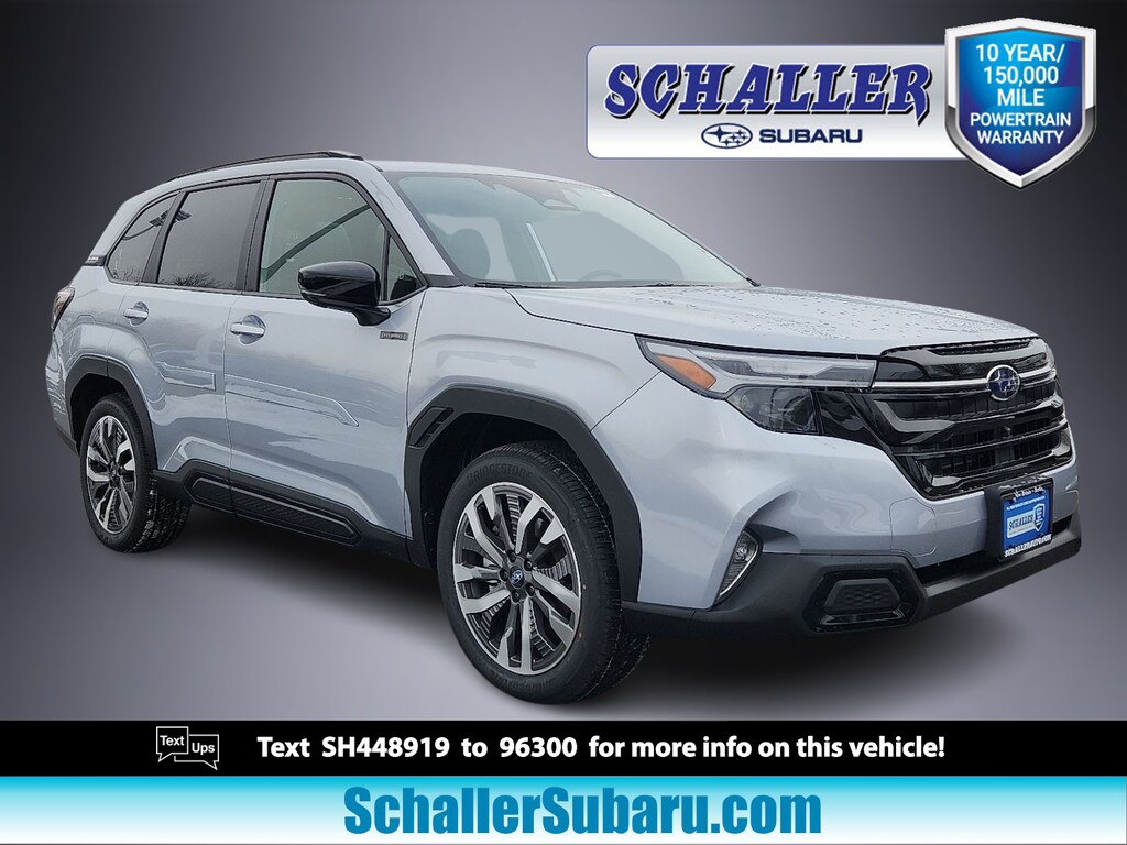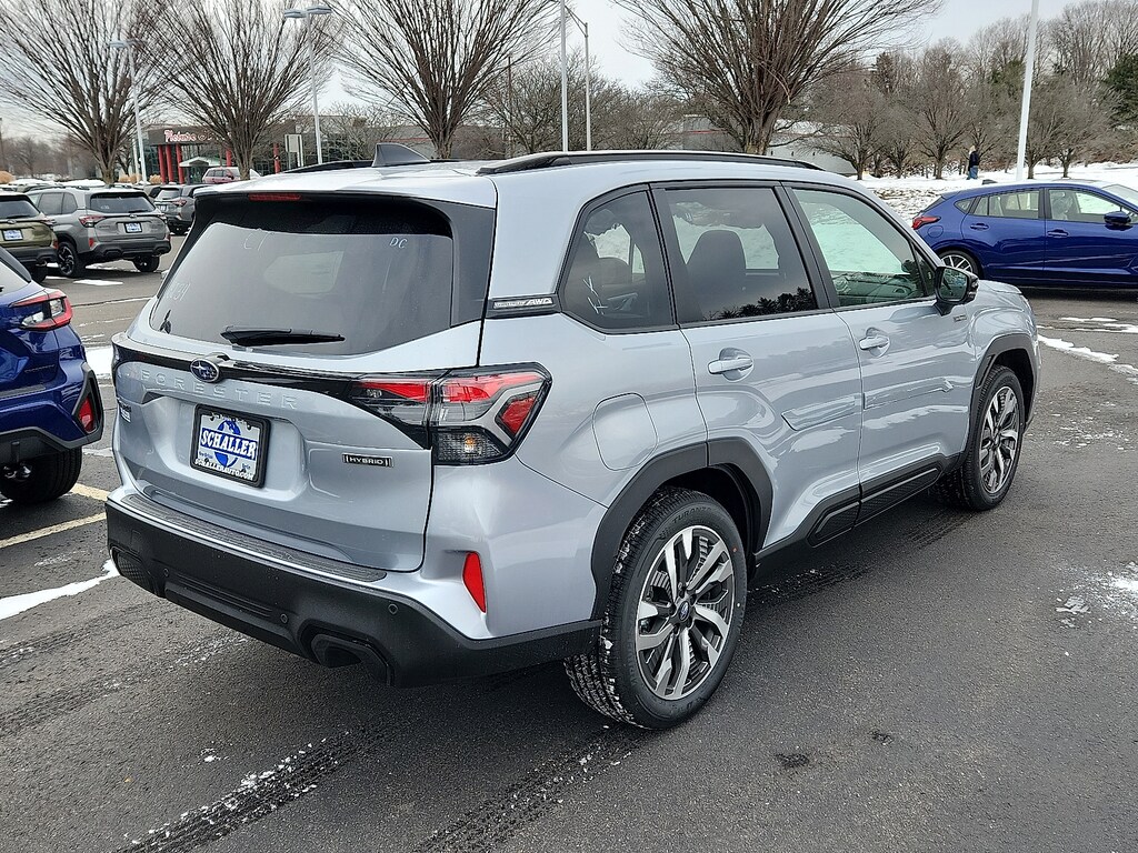 "Schaller Auto World is proud to offer this terrific 2025 Subaru Forester Hybrid Touring in Ice Silver Metallic Beautifully equipped with Standard Model 11 Speakers 4-Wheel Disc Brakes ABS brakes Air Conditioning Alloy wheels AM/FM radio: SiriusXM with 360L Anti-whiplash front head restraints Auto High-beam Headlights Auto-Dimming Exterior Mirror with Approach Light Automatic temperature control Body Side Molding - Ice Silver Metallic Brake assist Bumpers: body-color Compass Driver door bin Driver vanity mirror Dual front impact airbags Dual front side impact airbags Electronic Stability Control Emergency communication system: MySubaru Safety (3-year free trial) Exterior Parking Camera Rear Four wheel independent suspension Front anti-roll bar Front Bucket Seats Front Center Armrest Front dual zone A/C Front fog lights Front reading lights Fully automatic headlights harman/kardon® Speakers Heated and Ventilated Front Bucket Seats Heated door mirrors Heated front seats Heated rear seats Heated steering wheel HVAC memory Illuminated entry Knee airbag Low tire pressure warning Memory seat Navigation system: TomTom Navigation w/what3words Occupant sensing airbag Outside temperature display Overhead airbag Overhead console Panic alarm Passenger door bin Passenger vanity mirror Perforated Leather-Trimmed Upholstery Power door mirrors Power driver seat Power Liftgate Power moonroof: Panoramic Power passenger seat Power steering Power windows Radio data system Radio: Subaru 11.6""Multimedia Navigation System Rear anti-roll bar Rear seat center armrest Rear Seatback Protector Rear window defroster Rear window wiper Remote keyless entry Security system Speed control Speed-sensing steering Split folding rear seat Spoiler Steering wheel mounted audio controls Tachometer Telescoping steering wheel Tilt steering wheel Traction control Trip computer Turn signal indicator mirrors Variably intermittent wipers Ventilated front seats Wheel Lug Nut and Lock Set - Black and Wheels: 19""x 7.5 J Dark Gray Aluminum-Alloy!All new Schaller Cars Trucks and SUV's come with our EXCLUSIVE 10 year 150000 mile powertrain warranty! The Schaller Auto Group has been Serving the Communities around Hartford New Britain Berlin and Middletown since 1953. We have Hundreds of new and pre-owned vehicles in stock."