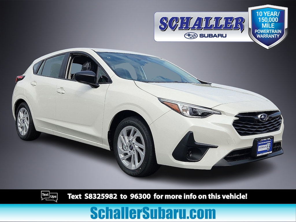 "Schaller Auto World is delighted to offer this good-looking 2025 Subaru Impreza in Crystal White Pearl Beautifully equipped with 4 Speakers 4-Wheel Disc Brakes ABS brakes Air Conditioning Alloy Wheels AM/FM radio: SiriusXM Anti-whiplash front head restraints Auto High-beam Headlights Automatic temperature control Brake assist Bumpers: body-color Cloth Upholstery Driver door bin Driver vanity mirror Dual front impact airbags Dual front side impact airbags Electronic Stability Control Exterior Parking Camera Rear Four wheel independent suspension Front anti-roll bar Front Bucket Seats Front Center Armrest Front dual zone A/C Front reading lights Fully automatic headlights Illuminated entry Knee airbag Low tire pressure warning Occupant sensing airbag Outside temperature display Overhead airbag Overhead console Panic alarm Passenger door bin Passenger vanity mirror Power door mirrors Power steering Power windows Radio data system Radio: Subaru STARLINK Dual 7.0""Multimedia System Rear window defroster Rear window wiper Remote keyless entry Security system Speed control Speed-sensing steering Split folding rear seat Spoiler STARLINK/Apple CarPlay/Android Auto Steering wheel mounted audio controls Tachometer Telescoping steering wheel Tilt steering wheel Traction control Trip computer Variably intermittent wipers Wheels: 16""x 6.0""1/2J Silver Aluminum Alloy and Wheels: 16""x 6.0""1/2J Steel w/Full Cap!All new Schaller Cars Trucks and SUV's come with our EXCLUSIVE 10 year 150000 mile powertrain warranty! The Schaller Auto Group has been Serving the Communities around Hartford New Britain Berlin and Middletown since 1953. We have Hundreds of new and pre-owned vehicles in stock."