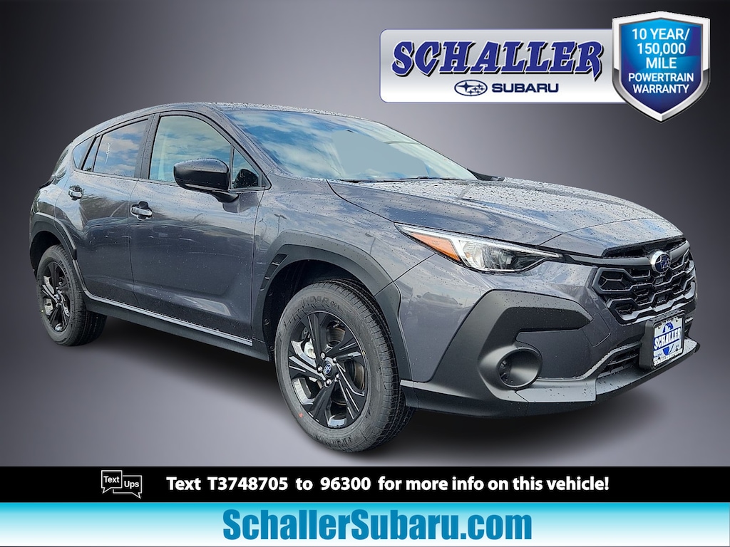"Schaller Auto World is excited to offer this charming 2026 Subaru Crosstrek in Magnetite Gray Metallic/Crystal Black Silica Beautifully equipped with Standard Model 4 Speakers 4-Wheel Disc Brakes ABS brakes Air Conditioning All-Weather Floor Liners Alloy wheels AM/FM radio: SiriusXM Anti-whiplash front head restraints Auto High-beam Headlights Automatic temperature control Brake assist Bumpers: body-color Cloth Upholstery Driver door bin Driver vanity mirror Dual front impact airbags Dual front side impact airbags Electronic Stability Control Exterior Parking Camera Rear Four wheel independent suspension Front anti-roll bar Front Bucket Seats Front Center Armrest Front dual zone A/C Front reading lights Fully automatic headlights Illuminated entry Knee airbag Low tire pressure warning Occupant sensing airbag Outside temperature display Overhead airbag Overhead console Panic alarm Passenger door bin Passenger vanity mirror Power door mirrors Power steering Power windows Radio data system Radio: Subaru Dual 7.0""Multimedia System Rear anti-roll bar Rear Bumper Cover Rear side impact airbag Rear window defroster Rear window wiper Remote keyless entry Security system Speed control Speed-sensing steering Split folding rear seat Spoiler Steering wheel mounted audio controls Tachometer Telescoping steering wheel Tilt steering wheel Traction control Trip computer Variably intermittent wipers Wheel Locks - Alloy and Wheels: 17""x 7.0""J Dark Gray Aluminum-Alloy!All new Schaller Cars Trucks and SUV's come with our EXCLUSIVE 10 year 150000 mile powertrain warranty! The Schaller Auto Group has been Serving the Communities around Hartford New Britain Berlin and Middletown since 1953. We have Hundreds of new and pre-owned vehicles in stock."