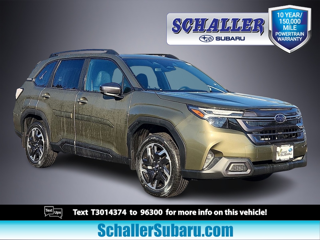 "Schaller Auto World is excited to offer this charming 2026 Subaru Forester Limited in Autumn Green Metallic Beautifully equipped with Harman/Kardon Speaker System and Navigation and Reverse Automatic Braking (Radio: Subaru 11.6""Multimedia Navigation System and Reverse Automatic Braking (RAB) System) 4-Wheel Disc Brakes 6 Speakers ABS brakes Air Conditioning Alloy wheels AM/FM radio: SiriusXM with 360L Anti-whiplash front head restraints Auto High-beam Headlights Automatic temperature control Brake assist Bumpers: body-color Driver door bin Driver vanity mirror Dual front impact airbags Dual front side impact airbags Electronic Stability Control Emergency communication system: MySubaru Companion (5-years free) Exterior Parking Camera Rear Four wheel independent suspension Front anti-roll bar Front Bucket Seats Front Center Armrest Front dual zone A/C Front fog lights Front reading lights Fully automatic headlights Heated door mirrors Heated Front Bucket Seats Heated front seats Heated steering wheel Illuminated entry Knee airbag Leather steering wheel Low tire pressure warning Occupant sensing airbag Outside temperature display Overhead airbag Overhead console Panic alarm Passenger door bin Passenger vanity mirror Perforated Leather-Trimmed Upholstery Power door mirrors Power driver seat Power Liftgate Power moonroof: Panoramic Power passenger seat Power steering Power windows Radio data system Radio: Subaru 11.6""Multimedia Plus System Rain sensing wipers Rear anti-roll bar Rear seat center armrest Rear window defroster Rear window wiper Remote keyless entry Security system Speed control Speed-sensing steering Split folding rear seat Spoiler Steering wheel mounted audio controls Tachometer Telescoping steering wheel Tilt steering wheel Traction control Trip computer Turn signal indicator mirrors Variably intermittent wipers and Wheels: 18""x 7.0 J Dark Metallic Aluminum-Alloy!All new Schaller Cars Trucks and SUV's come with our EXCLUSIVE 10 year 150000 mile powertrain warranty! The Schaller Auto Group has been Serving the Communities around Hartford New Britain Berlin and Middletown since 1953. We have Hundreds of new and pre-owned vehicles in stock."