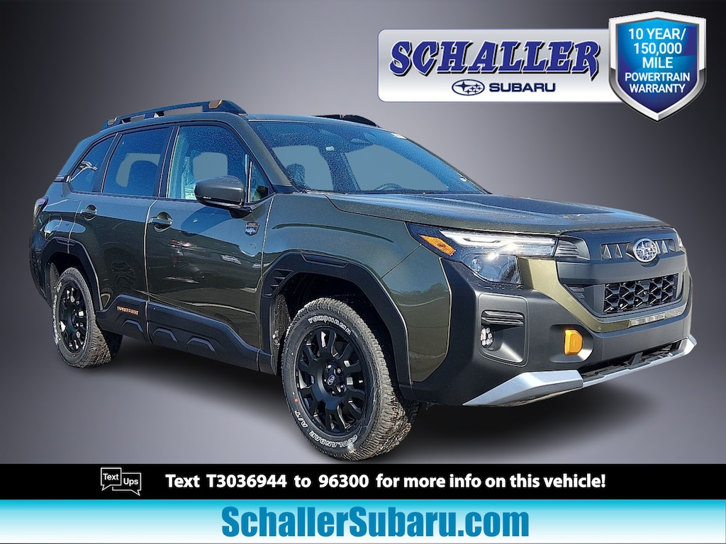 "Schaller Auto World is excited to offer this gorgeous 2026 Subaru Forester Wilderness in Autumn Green Metallic Beautifully equipped with Harman/Kardon Speaker System and Power Rear Gate (Power Rear Gate and Radio: Subaru 11.6""Multimedia Navigation System) 4-Wheel Disc Brakes 6 Speakers ABS brakes Air Conditioning Alloy wheels AM/FM radio: SiriusXM with 360L Anti-whiplash front head restraints Auto High-beam Headlights Automatic temperature control Brake assist Bumpers: body-color Driver door bin Driver vanity mirror Dual front impact airbags Dual front side impact airbags Electronic Stability Control Emergency communication system: MySubaru Companion (5-years free) Exterior Parking Camera Rear Four wheel independent suspension Front anti-roll bar Front Bucket Seats Front Center Armrest Front dual zone A/C Front fog lights Front reading lights Fully automatic headlights Heated door mirrors Heated Front Bucket Seats Heated front seats Illuminated entry Knee airbag Low tire pressure warning Occupant sensing airbag Outside temperature display Overhead airbag Overhead console Panic alarm Passenger door bin Passenger vanity mirror Power door mirrors Power driver seat Power moonroof: Panoramic Power steering Power windows Radio data system Radio: Subaru 11.6""Multimedia Plus System Rain sensing wipers Rear anti-roll bar Rear seat center armrest Rear window defroster Rear window wiper Remote keyless entry Security system Speed control Speed-sensing steering Split folding rear seat Spoiler Steering wheel mounted audio controls Tachometer Telescoping steering wheel Textured StarTex Upholstery Tilt steering wheel Traction control Trip computer Turn signal indicator mirrors Variably intermittent wipers and Wheels: 17""x 7.0 J Matte Black Finish Aluminum-Alloy!All new Schaller Cars Trucks and SUV's come with our EXCLUSIVE 10 year 150000 mile powertrain warranty! The Schaller Auto Group has been Serving the Communities around Hartford New Britain Berlin and Middletown since 1953. We have Hundreds of new and pre-owned vehicles in stock."