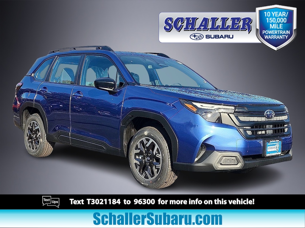 "Recent Arrival! Schaller Auto World is very proud to offer this fantastic-looking 2026 Subaru Forester in Daybreak Blue Pearl Beautifully equipped with Standard Model 4 Speakers 4-Wheel Disc Brakes ABS brakes Air Conditioning All-Weather Floor Liners Alloy wheels AM/FM radio: SiriusXM Anti-whiplash front head restraints Auto High-beam Headlights Automatic temperature control Brake assist Bumpers: body-color Driver door bin Driver vanity mirror Dual front impact airbags Dual front side impact airbags Electronic Stability Control Exterior Parking Camera Rear Four wheel independent suspension Front anti-roll bar Front Bucket Seats Front Center Armrest Front dual zone A/C Front reading lights Fully automatic headlights Hexagonal Patterned Cloth Upholstery Illuminated entry Knee airbag Low tire pressure warning Occupant sensing airbag Outside temperature display Overhead airbag Overhead console Panic alarm Passenger door bin Passenger vanity mirror Power door mirrors Power steering Power windows Radio data system Radio: Subaru Dual 7.0""Multimedia System Rear anti-roll bar Rear Bumper Cover Rear window defroster Rear window wiper Remote keyless entry Security system Speed control Speed-sensing steering Split folding rear seat Spoiler Steering wheel mounted audio controls Tachometer Telescoping steering wheel Tilt steering wheel Traction control Trip computer Variably intermittent wipers and Wheels: 17""x 7.0 J Dark Metallic Aluminum-Alloy!All new Schaller Cars Trucks and SUV's come with our EXCLUSIVE 10 year 150000 mile powertrain warranty! The Schaller Auto Group has been Serving the Communities around Hartford New Britain Berlin and Middletown since 1953. We have Hundreds of new and pre-owned vehicles in stock."