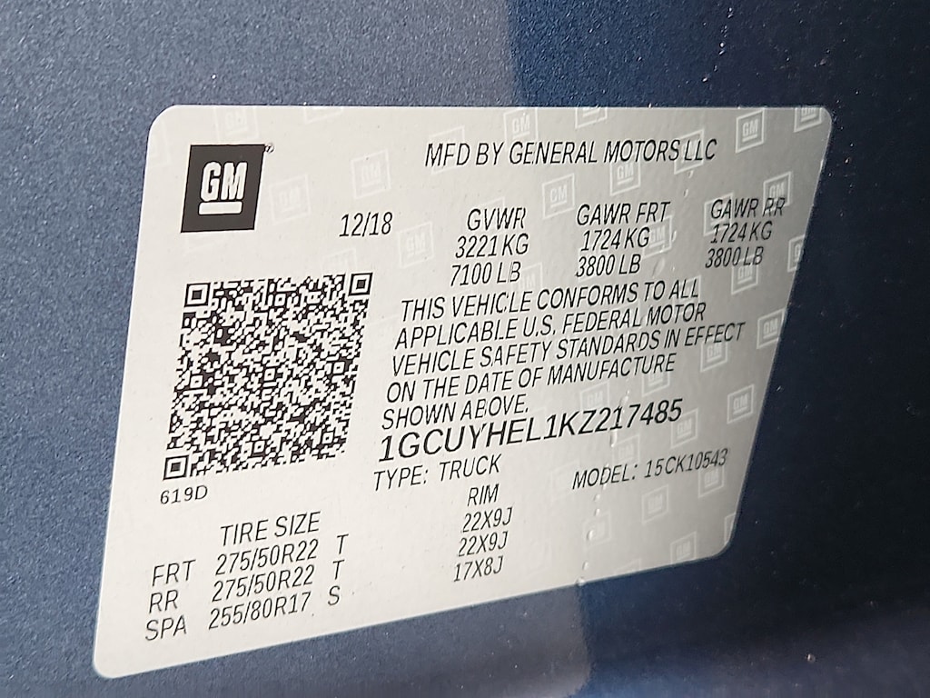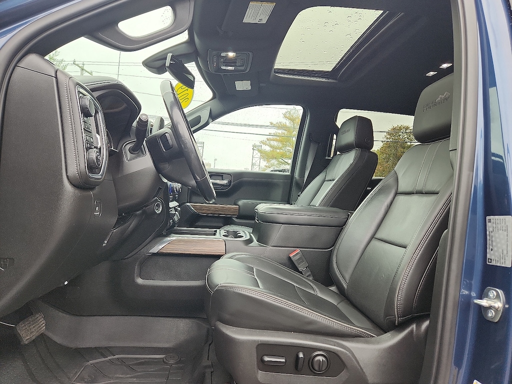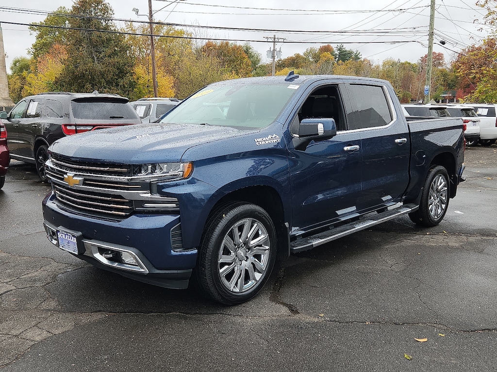 "Northsky Blue Metallic 2019 Chevrolet Silverado 1500 High Country EcoTec3 6.2L V8 10-Speed Automatic 4WD10-Way Power Driver Seat w/Lumbar 10-Way Power Passenger Seat Adjuster w/Lumbar 12-Volt Rear Auxiliary Power Outlet 120-Volt Bed Mounted Power Outlet 120-Volt Instrument Panel Power Outlet 170 Amp Alternator 2nd Row Heated Outboard Seats 3.23 Rear Axle Ratio 4-Wheel Disc Brakes 7 Speakers 8""Driver Information Center ABS brakes Advanced Trailering System Air Conditioning All-Weather Floor Liner (LPO) Alloy wheels AM/FM radio: SiriusXM Apple CarPlay/Android Auto Auto-dimming door mirrors Auto-Dimming Inside Rear-View Mirror Auto-dimming Rear-View mirror Automatic temperature control Auxiliary External Transmission Oil Cooler Bluetooth® For Phone Brake assist Bumpers: body-color Chevrolet Connected Access Chevrolet w/4G LTE Chevytec Spray-On Black Bedliner Chrome Assist Steps Chrome Grille Chrome Recovery Hooks Color-Keyed Carpeting Floor Covering Compass Deep-Tinted Glass Delay-off headlights Driver door bin Driver Memory Driver vanity mirror Dual Exhaust w/Polished Outlets Dual front impact airbags Dual front side impact airbags Electric Rear-Window Defogger Electrical Lock Control Steering Column Electronic Cruise Control Electronic Stability Control Floor Mounted Console Following Distance Indicator Forward Collision Alert Front anti-roll bar Front Bucket Seats Front Carpeted Floor Mats Front Center Armrest w/Storage Front dual zone A/C Front fog lights Front LED Fog Lamps Front License Plate Kit Front Pedestrian Braking Front reading lights Front wheel independent suspension Fully automatic headlights Garage door transmitter HD Radio HD Rear Vision Camera Heated door mirrors Heated Driver & Front Passenger Seats Heated front seats Heated rear seats Heated Steering Wheel Heated steering wheel Heavy Duty Suspension Heavy-Duty Rear Locking Differential High Country Premium Package (DISC) Hitch Guidance Hitch Guidance w/Hitch View Illuminated entry Integrated Trailer Brake Controller IntelliBeam Automatic High Beam On/Off Keyless Open & Start Lane Change Alert w/Side Blind Zone Alert Lane Keep Assist w/Lane Departure Warning Leather Wrapped Steering Wheel LED Cargo Area Lighting Left & Right Side Mirror Cameras Low Speed Forward Automatic Braking Low tire pressure warning Manual Tilt/Telescoping Steering Column Memory seat Molded Black Splash Guards (LPO) Navigation System Occupant sensing airbag OnStar & Chevrolet Connected Services Capable Outside Heated Power-Adjustable Mirrors Outside temperature display Overhead airbag Overhead console Painted Mirror Caps Panic alarm Passenger door bin Passenger vanity mirror Perforated Leather Appointed Seat Trim Power Door Locks Power door mirrors Power driver seat Power Front Passenger Windows w/Express Up/Down Power Front Windows w/Driver Express Up/Down Power passenger seat Power Rear Windows w/Express Down Power Sliding Rear Window w/Rear Defogger Power steering Power Sunroof Power windows Preferred Equipment Group 3LZ Premium audio system: Chevrolet Infotainment System 3 Radio data system Radio: Chevrolet Infotainment 3 Premium System Rear Carpeted Floor Mats Rear Cross Traffic Alert Rear Dual USB Charging-Only Ports Rear reading lights Rear seat center armrest Rear step bumper Rear Wheelhouse Liners Rear window defroster Remote keyless entry Remote Vehicle Starter System Safety Alert Seat Safety Package II Security system SiriusXM Radio Speed control Speed-sensing steering Split folding rear seat Steering Wheel Audio Controls Steering wheel mounted audio controls Tachometer Telescoping steering wheel Theft Deterrent System (Unauthorized Entry) Tilt steering wheel Traction control Trailer Camera Package Trailer Tire Pressure Monitor System Trailering Package Tri-Fold Soft Tonneau Cover (LPO) Trip computer Ultrasonic Front & Rear"