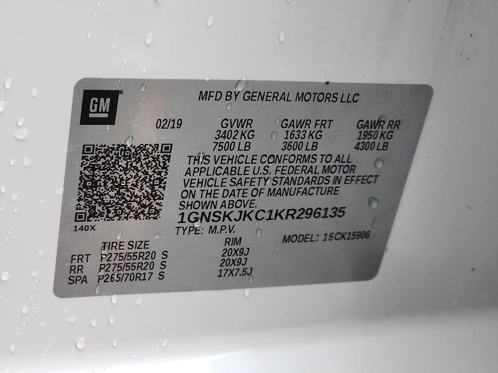 Iridescent Pearl Tricoat 2019 Chevrolet Suburban Premier EcoTec3 5.3L V8 6-Speed Automatic Electronic with Overdrive 4WD10 Speakers 12-Volt Auxiliary Power Outlet (5) 1st & 2nd Row Color-Keyed Carpeted Floor Mats 2-Speed Active Electronic AutoTrac Transfer Case 3.42 Rear Axle Ratio 3rd Row 60/40 Power Fold Split-Bench 3rd row seats: split-bench 4-Wheel Antilock Disc Brakes 4-Wheel Disc Brakes 6-Way Power Front Passenger Seat Adjuster ABS brakes Adaptive suspension Adjustable pedals Air Conditioning All-Weather Floor Liner Package (LPO) Alloy wheels AM/FM radio: SiriusXM AM/FM Stereo w/Navigation Apple CarPlay/Android Auto Auto High-beam Headlights Auto-dimming door mirrors Auto-Dimming Inside Rear-View Mirror Auto-dimming Rear-View mirror Automatic temperature control Black Assist Steps Black Roof Rack Cross Bars Bodyside moldings Bose Centerpoint Premium 10-Speaker Surround Sound Brake assist Bumpers: body-color CD player Color-Keyed Carpeting Floor Covering Compass Delay-off headlights Driver door bin Driver Inboard & Front Passenger Airbags Driver vanity mirror Dual front impact airbags Dual front side impact airbags Electronic Cruise Control w/Set & Resume Speed Electronic Stability Control Emergency communication system: OnStar and Chevrolet connected services capable Enhanced Driver Alert Package Enhanced Driver Information Center Exterior Parking Camera Rear Floor Console w/Storage Area Fog Lamps Forward Collision Alert Front & Rear Park Assist Front anti-roll bar Front Bucket Seats Front Center Armrest Front dual zone A/C Front fog lights Front reading lights Front wheel independent suspension Fully automatic headlights Garage door transmitter Hands-Free Power Liftgate HD Radio Head-Up Display Headphones Heated & Ventilated Driver & Front Passenger Seats Heated & Ventilated Front Reclining Bucket Seats Heated 2nd Row Outboard Seats Heated door mirrors Heated front seats Heated Leather Wrapped Steering Wheel Heated rear seats Heated steering wheel High-Intensity Discharge Headlights Illuminated entry Integrated Trailer Brake Controller IntelliBeam w/Automatic High Beam On/Off Lane Change Alert w/Side Blind Zone Alert Lane Keep Assist w/Lane Departure Warning Leather Shift Knob License Plate Front Mounting Package Low Speed Forward Automatic Braking Low tire pressure warning Magnetic Ride Control Suspension Package Max Trailering Package Memory seat Memory Settings Navigation System Occupant sensing airbag Outside temperature display Overhead airbag Overhead console Panic alarm Passenger door bin Passenger vanity mirror Passive Entry System Pedal memory Perforated Leather-Appointed Seat Trim Power door mirrors Power driver seat Power Folding & Adjustable Heated Outside Mirrors Power Liftgate Power passenger seat Power Release 2nd Row Bucket Seats Power steering Power Tilt & Telescoping Steering Column Power Tilt-Sliding Sunroof w/Express-Open/Close Power windows Power-Adjustable Accelerator & Brake Pedals Power-Retractable Assist Steps Preferred Equipment Group 1LZ Push Button Keyless Start Rain sensing wipers Rear air conditioning Rear anti-roll bar Rear audio controls Rear Cross Traffic Alert Rear reading lights Rear Seat Entertainment System Rear window defroster Rear window wiper Remote keyless entry Remote Vehicle Start Roof rack: rails only Roof-Mounted Luggage Rack Side Rails Safety Alert Seat Security system Single-Slot CD/MP3 Player SiriusXM NavTraffic SiriusXM Radio Speed control Speed-sensing steering Split folding rear seat Spoiler Steering wheel memory Steering wheel mounted audio controls Sun Entertainment & Destinations Package Tachometer Telescoping steering wheel Tilt steering wheel Traction control Trip computer Turn signal indicator mirrors Universal Home Remote Variably intermittent wipers Ventilated front seats Voltmeter Wheel Locks (Set of 4) (LPO)