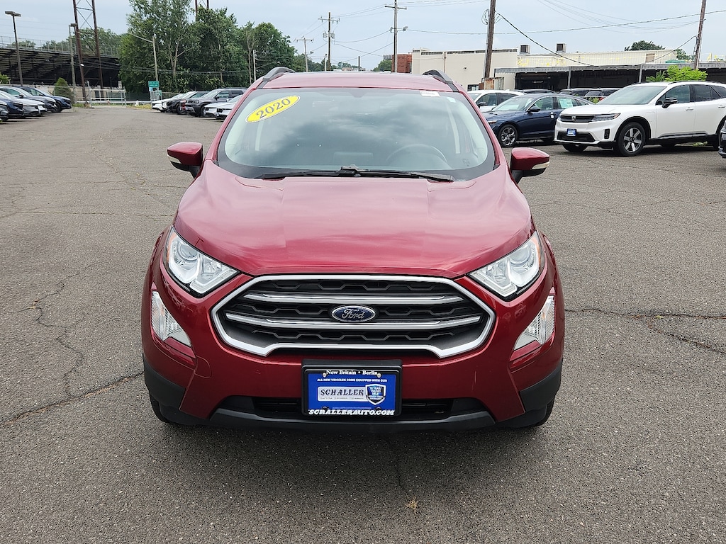 "Ruby Red 2020 Ford EcoSport SE 2.0L I4 Ti-VCT GDI 6-Speed Automatic 4WD3.51 Axle Ratio 4-Wheel Disc Brakes 6 Speakers ABS brakes Air Conditioning Alloy wheels AM/FM radio: SiriusXM AppLink/Apple CarPlay and Android Auto Automatic temperature control Brake assist Bumpers: body-color Compass Delay-off headlights Driver door bin Driver vanity mirror Dual front impact airbags Dual front side impact airbags Electronic Stability Control Emergency communication system: SYNC 3 911 Assist Equipment Group 200A Exterior Parking Camera Rear Front anti-roll bar Front Bucket Seats Front Center Armrest Front fog lights Front reading lights Front wheel independent suspension Fully automatic headlights Heated front seats Illuminated entry Knee airbag Leather Shift Knob Leather steering wheel Low tire pressure warning Occupant sensing airbag Outside temperature display Overhead airbag Overhead console Panic alarm Passenger door bin Passenger vanity mirror Power door mirrors Power driver seat Power moonroof Power steering Power windows Radio data system Radio: AM/FM Stereo w/MP3 Capable Rear anti-roll bar Rear Parking Sensors Rear seat center armrest Rear side impact airbag Rear window defroster Rear window wiper Remote keyless entry Roof rack: rails only SiriusXM Radio Speed control Speed-sensing steering Split folding rear seat Steering wheel mounted audio controls SYNC 3 Communications & Entertainment System Tachometer Telescoping steering wheel Tilt steering wheel Tire Inflator & Sealant Kit Traction control Trip computer Turn signal indicator mirrors Unique Cloth Heated Front Bucket Seats Variably intermittent wipers Wheels: 16""Shadow Silver-Painted Aluminum. 23/29 City/Highway MPGSchaller Auto Group has TWO Used Car Locations: Right off Route 9 in New Britain and Route 9 and the Berlin Turnpike in Berlin. Please call 860-826-2023 to confirm this Vehicle's Location. All of our Pre-Owned Vehicles go through our Comprehensive 125 Point Quality Inspection. Every Schaller pre-owned vehicle comes with warranty coverage! With all budgets in mind we now offer Schaller âValue Carsâ starting at $2995 and include a 30 day satisfaction guarantee and all come with a FREE Carfax Vehicle History Report. The Schaller Auto Group is Family Owned and Operated for Over 65 Years and is known for Selling Top Quality Used Vehicles and Standing behind them After the Sale!"