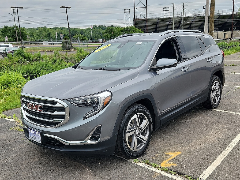 "Satin Steel Metallic 2021 GMC Terrain SLT 1.5L DOHC 9-Speed Automatic FWD2 USB Data Ports 2 USB Data Ports w/SD Card Reader 3.47 Axle Ratio 4-Wheel Disc Brakes 6 Speakers 6-Speaker Audio System Feature 8-Way Power Driver Seat Adjuster ABS brakes Air Conditioning Alloy wheels AM/FM radio: SiriusXM Apple CarPlay/Android Auto Auto High-beam Headlights Auto-dimming door mirrors Auto-dimming Rear-View mirror Automatic temperature control Bluetooth® For Phone Brake assist Bumpers: body-color Compass Delay-off headlights Driver & Front Passenger Heated Seats Driver door bin Driver vanity mirror Dual front impact airbags Dual front side impact airbags Electronic Stability Control Emergency communication system: OnStar and GMC connected services capable Exterior Parking Camera Rear Floor Liner Package (LPO) Four wheel independent suspension Front & Rear All-Weather Floor Liners (LPO) Front anti-roll bar Front Bucket Seats Front Center Armrest Front dual zone A/C Front fog lights Front reading lights Fully automatic headlights Garage door transmitter Heated door mirrors Heated front seats Heated steering wheel High-Intensity Discharge Headlights Illuminated entry Integrated Cargo Liner (LPO) License Plate Front Mounting Package Low tire pressure warning Memory seat Occupant sensing airbag Outside temperature display Overhead airbag Overhead console Panic alarm Passenger door bin Passenger vanity mirror Perforated Leather-Appointed Seat Trim Power door mirrors Power Driver Lumbar Control Power driver seat Power Liftgate Power passenger seat Power steering Power windows Preferred Equipment Group 4SA Radio data system Radio: GMC Infotainment Audio System w/8""Display Rear anti-roll bar Rear seat center armrest Rear window defroster Rear window wiper Remote keyless entry Roof rack: rails only Security system SiriusXM Radio Speed control Speed-sensing steering Split folding rear seat Spoiler Steering wheel mounted audio controls Tachometer Telescoping steering wheel Tilt steering wheel Traction control Trip computer Turn signal indicator mirrors Variably intermittent wipers Wheels: 18""x 7""Machined Aluminum w/Gray Accents. Priced below KBB Fair Purchase Price! Odometer is 26201 miles below market average! 25/30 City/Highway MPGSchaller Auto Group has TWO Used Car Locations: Right off Route 9 in New Britain and Route 9 and the Berlin Turnpike in Berlin. Please call 860-826-2023 to confirm this Vehicle's Location. All of our Pre-Owned Vehicles go through our Comprehensive 125 Point Quality Inspection. Every Schaller pre-owned vehicle comes with warranty coverage! With all budgets in mind we now offer Schaller âValue Carsâ starting at $2995 and include a 30 day satisfaction guarantee and all come with a FREE Carfax Vehicle History Report. The Schaller Auto Group is Family Owned and Operated for Over 65 Years and is known for Selling Top Quality Used Vehicles and Standing behind them After the Sale!"