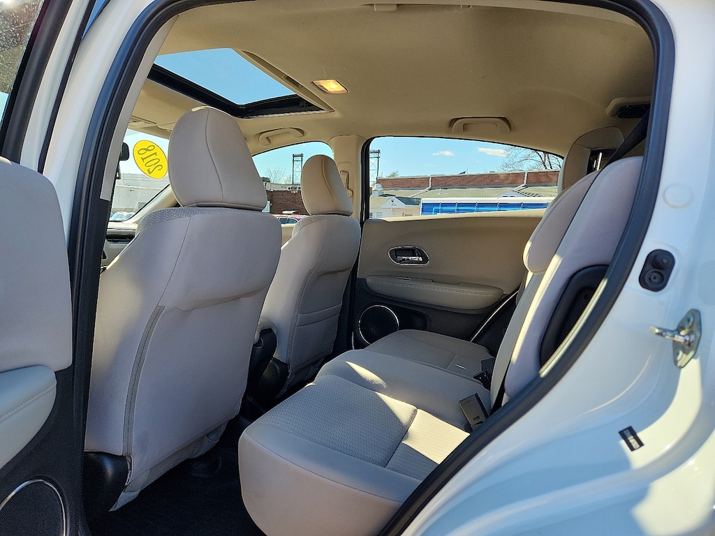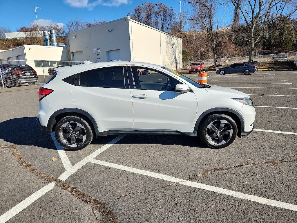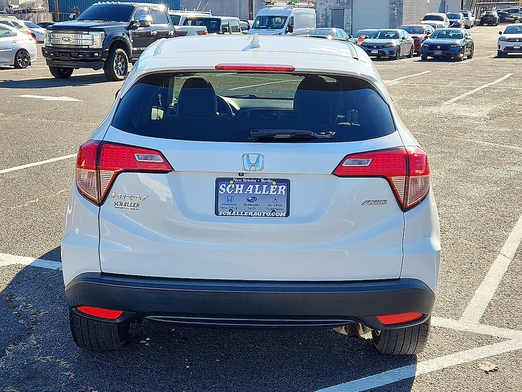 White Orchid Pearl 2018 Honda HR-V EX 1.8L I4 SOHC 16V i-VTEC CVT AWD4-Wheel Disc Brakes 5.436 Axle Ratio 6 Speakers ABS brakes Air Conditioning Alloy wheels AM/FM radio Automatic temperature control Brake assist Bumpers: body-color CD player Cloth Seat Trim Driver door bin Driver vanity mirror Dual front impact airbags Dual front side impact airbags Electronic Stability Control Exterior Parking Camera Rear Front anti-roll bar Front Bucket Seats Front Center Armrest Front fog lights Front reading lights Front wheel independent suspension Fully automatic headlights Heated door mirrors Heated Front Bucket Seats Heated front seats Illuminated entry Low tire pressure warning Occupant sensing airbag Outside temperature display Overhead airbag Panic alarm Passenger door bin Passenger vanity mirror Power door mirrors Power moonroof Power steering Power windows Radio data system Radio: AM/FM Stereo Audio System (180 Watts) Rear anti-roll bar Rear window defroster Rear window wiper Remote keyless entry Security system Speed control Split folding rear seat Spoiler Steering wheel mounted audio controls Tachometer Telescoping steering wheel Tilt steering wheel Traction control Trip computer Turn signal indicator mirrors Variably intermittent wipers. 27/31 City/Highway MPGAwards: * 2018 KBB.com 10 Most Awarded Brands * 2018 KBB.com Brand Image AwardsKelley Blue Book Brand Image Awards are based on the Brand Watch(tm) study from Kelley Blue Book Market Intelligence. Award calculated among non-luxury shoppers. For more information visit www.kbb.com. Kelley Blue Book is a registered trademark of Kelley Blue Book Co. Inc.Schaller Auto Group has TWO Used Car Locations: Right off Route 9 in New Britain and Route 9 and the Berlin Turnpike in Berlin. Please call 860-826-2023 to confirm this Vehicle's Location. All of our Pre-Owned Vehicles go through our Comprehensive 125 Point Quality Inspection. Every Schaller pre-owned vehicle comes with warranty coverage! With all budgets in mind we now offer Schaller âValue Carsâ starting at $2995 and include a 30 day satisfaction guarantee and all come with a FREE Carfax Vehicle History Report. The Schaller Auto Group is Family Owned and Operated for Over 65 Years and is known for Selling Top Quality Used Vehicles and Standing behind them After the Sale!