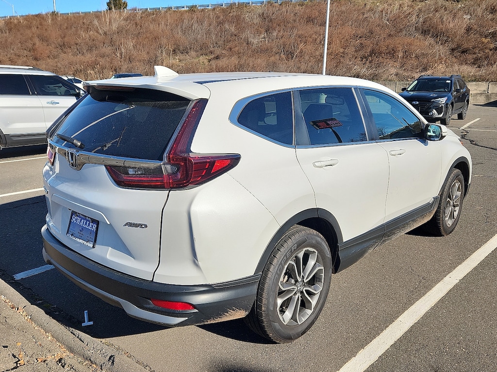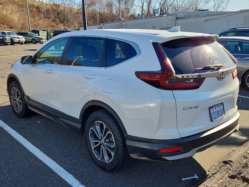 "Platinum White 2021 Honda CR-V EX-L 1.5L I4 DOHC 16V CVT AWD18""Alloy Wheels 4-Wheel Disc Brakes 5.64 Axle Ratio 8 Speakers ABS brakes Adaptive Cruise Control: Adaptive Cruise Control (ACC) with Low-Speed Follow Air Conditioning AM/FM radio: SiriusXM Apple CarPlay/Android Auto Auto High-beam Headlights Auto-dimming Rear-View mirror Automatic temperature control Blind Spot Information (BSI) System warning Brake assist Bumpers: body-color Compass Delay-off headlights Driver door bin Driver vanity mirror Dual front impact airbags Dual front side impact airbags Electronic Stability Control Exterior Parking Camera Rear Forward collision: Collision Mitigation Braking System (CMBS) + FCW mitigation Four wheel independent suspension Front anti-roll bar Front Bucket Seats Front Center Armrest Front dual zone A/C Front fog lights Front reading lights Garage door transmitter: HomeLink Heated door mirrors Heated Front Bucket Seats Heated front seats Illuminated entry Leather Seat Trim Leather Shift Knob Low tire pressure warning Memory seat Occupant sensing airbag Outside temperature display Overhead airbag Overhead console Panic alarm Passenger door bin Passenger vanity mirror Power door mirrors Power driver seat Power Liftgate Power moonroof Power passenger seat Power steering Power windows Radio data system Radio: 180-Watt AM/FM/HD/SiriusXM Audio System Rear anti-roll bar Rear seat center armrest Rear window defroster Rear window wiper Remote keyless entry Security system Speed control Speed-sensing steering Speed-Sensitive Wipers Split folding rear seat Spoiler Steering wheel mounted audio controls Tachometer Telescoping steering wheel Tilt steering wheel Traction control Trip computer Turn signal indicator mirrors Variably intermittent wipers. Priced below KBB Fair Purchase Price! Odometer is 15688 miles below market average! 27/32 City/Highway MPGSchaller Auto Group has TWO Used Car Locations: Right off Route 9 in New Britain and Route 9 and the Berlin Turnpike in Berlin. Please call 860-826-2023 to confirm this Vehicle's Location. All of our Pre-Owned Vehicles go through our Comprehensive 125 Point Quality Inspection. Every Schaller pre-owned vehicle comes with warranty coverage! With all budgets in mind we now offer Schaller âValue Carsâ starting at $2995 and include a 30 day satisfaction guarantee and all come with a FREE Carfax Vehicle History Report. The Schaller Auto Group is Family Owned and Operated for Over 65 Years and is known for Selling Top Quality Used Vehicles and Standing behind them After the Sale!"