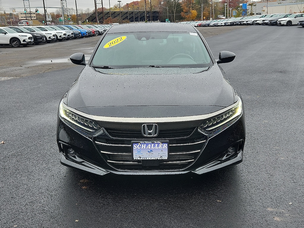 "Crystal Black Pearl 2022 Honda Accord Sport 1.5T I4 DOHC 16V Turbocharged VTEC CVT FWD4-Wheel Disc Brakes 8 Speakers ABS brakes Adaptive Cruise Control: Adaptive Cruise Control (ACC) with Low-Speed Follow Air Conditioning Alloy wheels AM/FM radio Apple CarPlay/Android Auto Auto High-beam Headlights Automatic temperature control Brake assist Bumpers: body-color Delay-off headlights Driver door bin Driver vanity mirror Dual front impact airbags Dual front side impact airbags Electronic Stability Control Emergency communication system: HondaLink Exterior Parking Camera Rear Fabric w/Synthetic Leather Seat Trim Forward collision: Collision Mitigation Braking System (CMBS) + FCW mitigation Four wheel independent suspension Front anti-roll bar Front Bucket Seats Front Center Armrest Front dual zone A/C Front fog lights Front reading lights Fully automatic headlights Illuminated entry Knee airbag Lane Departure Warning System Leather Shift Knob Leather steering wheel Low tire pressure warning Occupant sensing airbag Outside temperature display Overhead airbag Overhead console Panic alarm Passenger door bin Passenger vanity mirror Power door mirrors Power driver seat Power steering Power windows Radio data system Radio: 180-Watt AM/FM Audio System Rear anti-roll bar Rear seat center armrest Rear window defroster Remote keyless entry Security system Speed control Speed-sensing steering Speed-Sensitive Wipers Split folding rear seat Spoiler Steering wheel mounted audio controls Tachometer Telescoping steering wheel Tilt steering wheel Traction control Trip computer Variably intermittent wipers Wheels: 19""Machine-Finished Alloy w/Black Inserts. 29/35 City/Highway MPGSchaller Auto Group has TWO Used Car Locations: Right off Route 9 in New Britain and Route 9 and the Berlin Turnpike in Berlin. Please call 860-826-2023 to confirm this Vehicle's Location. All of our Pre-Owned Vehicles go through our Comprehensive 125 Point Quality Inspection. Every Schaller pre-owned vehicle comes with warranty coverage! With all budgets in mind we now offer Schaller âValue Carsâ starting at $2995 and include a 30 day satisfaction guarantee and all come with a FREE Carfax Vehicle History Report. The Schaller Auto Group is Family Owned and Operated for Over 65 Years and is known for Selling Top Quality Used Vehicles and Standing behind them After the Sale!"