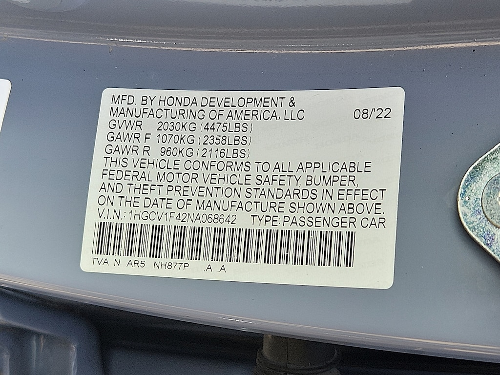 "Gray 2022 Honda Accord Sport Special Edition 1.5T I4 DOHC 16V Turbocharged VTEC CVT FWD4-Wheel Disc Brakes 8 Speakers ABS brakes Adaptive Cruise Control: Adaptive Cruise Control (ACC) with Low-Speed Follow Air Conditioning Alloy wheels AM/FM radio Apple CarPlay/Android Auto Auto High-beam Headlights Automatic temperature control Brake assist Bumpers: body-color Delay-off headlights Driver door bin Driver vanity mirror Dual front impact airbags Dual front side impact airbags Electronic Stability Control Emergency communication system: HondaLink Exterior Parking Camera Rear Forward collision: Collision Mitigation Braking System (CMBS) + FCW mitigation Four wheel independent suspension Front anti-roll bar Front Bucket Seats Front Center Armrest Front dual zone A/C Front fog lights Front reading lights Fully automatic headlights Heated door mirrors Heated Front Bucket Seats Heated front seats Illuminated entry Knee airbag Lane Departure Warning System Leather Shift Knob Leather steering wheel Low tire pressure warning Occupant sensing airbag Outside temperature display Overhead airbag Overhead console Panic alarm Passenger door bin Passenger vanity mirror Perforated Leather Seat Trim Power door mirrors Power driver seat Power passenger seat Power steering Power windows Radio data system Radio: 180-Watt AM/FM Audio System Rear anti-roll bar Rear seat center armrest Rear window defroster Remote keyless entry Security system Speed control Speed-sensing steering Speed-Sensitive Wipers Split folding rear seat Spoiler Steering wheel mounted audio controls Tachometer Telescoping steering wheel Tilt steering wheel Traction control Trip computer Variably intermittent wipers Wheels: 19""Machine-Finished Alloy w/Black Inserts. 29/35 City/Highway MPGSchaller Auto Group has TWO Used Car Locations: Right off Route 9 in New Britain and Route 9 and the Berlin Turnpike in Berlin. Please call 860-826-2023 to confirm this Vehicle's Location. All of our Pre-Owned Vehicles go through our Comprehensive 125 Point Quality Inspection. Every Schaller pre-owned vehicle comes with warranty coverage! With all budgets in mind we now offer Schaller âValue Carsâ starting at $2995 and include a 30 day satisfaction guarantee and all come with a FREE Carfax Vehicle History Report. The Schaller Auto Group is Family Owned and Operated for Over 65 Years and is known for Selling Top Quality Used Vehicles and Standing behind them After the Sale!"