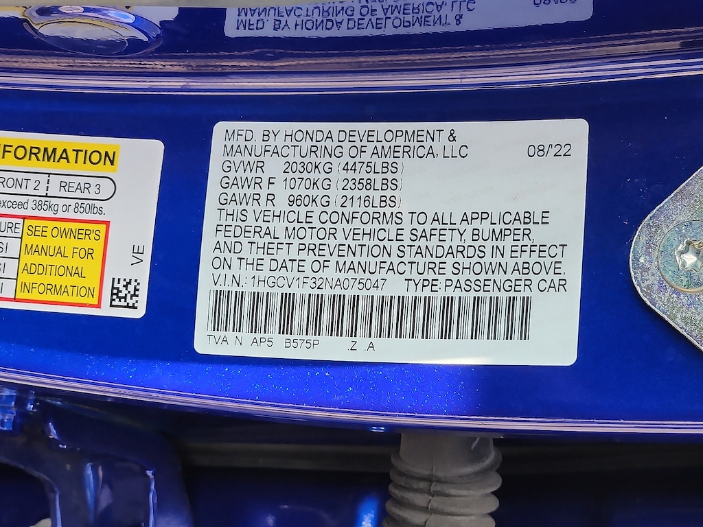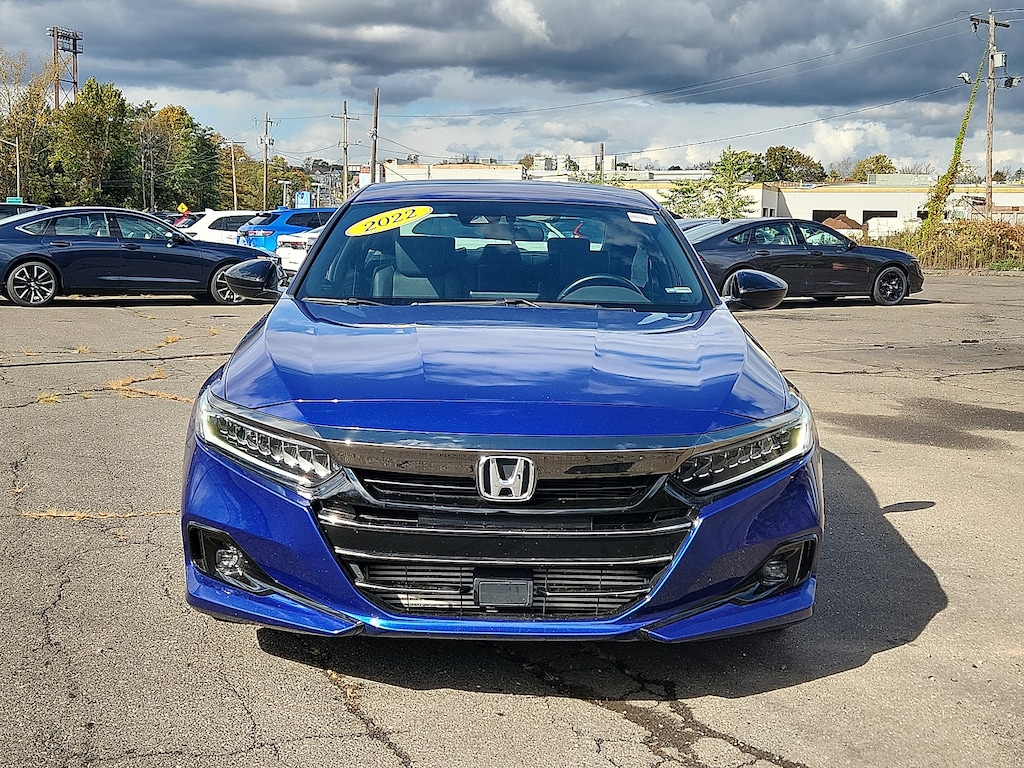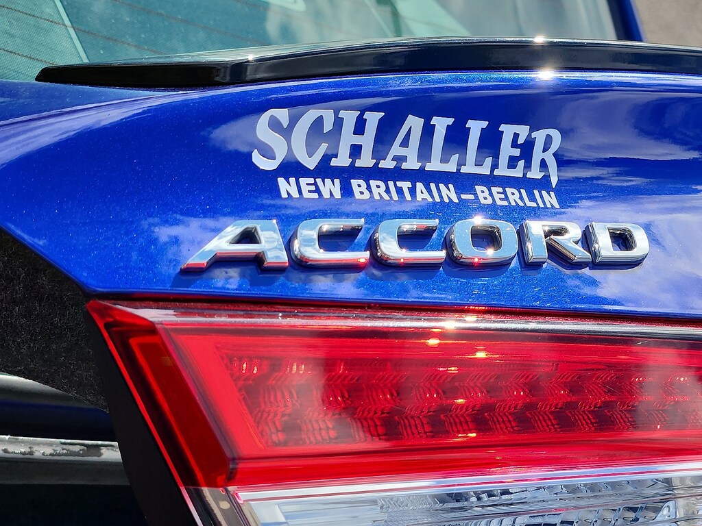 "Blue 2022 Honda Accord Sport 1.5T I4 DOHC 16V Turbocharged VTEC CVT FWD4-Wheel Disc Brakes 8 Speakers ABS brakes Adaptive Cruise Control: Adaptive Cruise Control (ACC) with Low-Speed Follow Air Conditioning Alloy wheels AM/FM radio Apple CarPlay/Android Auto Auto High-beam Headlights Automatic temperature control Brake assist Bumpers: body-color Delay-off headlights Driver door bin Driver vanity mirror Dual front impact airbags Dual front side impact airbags Electronic Stability Control Emergency communication system: HondaLink Exterior Parking Camera Rear Fabric w/Synthetic Leather Seat Trim Forward collision: Collision Mitigation Braking System (CMBS) + FCW mitigation Four wheel independent suspension Front anti-roll bar Front Bucket Seats Front Center Armrest Front dual zone A/C Front fog lights Front reading lights Fully automatic headlights Illuminated entry Knee airbag Lane Departure Warning System Leather Shift Knob Leather steering wheel Low tire pressure warning Occupant sensing airbag Outside temperature display Overhead airbag Overhead console Panic alarm Passenger door bin Passenger vanity mirror Power door mirrors Power driver seat Power steering Power windows Radio data system Radio: 180-Watt AM/FM Audio System Rear anti-roll bar Rear seat center armrest Rear window defroster Remote keyless entry Security system Speed control Speed-sensing steering Speed-Sensitive Wipers Split folding rear seat Spoiler Steering wheel mounted audio controls Tachometer Telescoping steering wheel Tilt steering wheel Traction control Trip computer Variably intermittent wipers Wheels: 19""Machine-Finished Alloy w/Black Inserts. 29/35 City/Highway MPGSchaller Auto Group has TWO Used Car Locations: Right off Route 9 in New Britain and Route 9 and the Berlin Turnpike in Berlin. Please call 860-826-2023 to confirm this Vehicle's Location. All of our Pre-Owned Vehicles go through our Comprehensive 125 Point Quality Inspection. Every Schaller pre-owned vehicle comes with warranty coverage! With all budgets in mind we now offer Schaller âValue Carsâ starting at $2995 and include a 30 day satisfaction guarantee and all come with a FREE Carfax Vehicle History Report. The Schaller Auto Group is Family Owned and Operated for Over 65 Years and is known for Selling Top Quality Used Vehicles and Standing behind them After the Sale!"