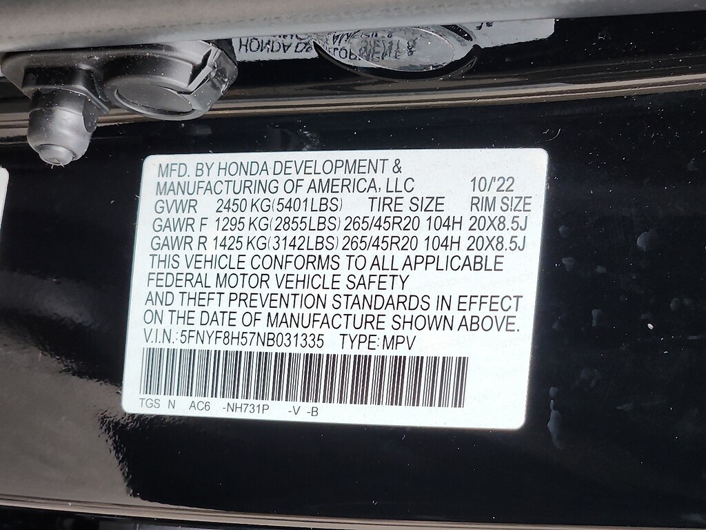 - Front tires: 265/45HR20.0