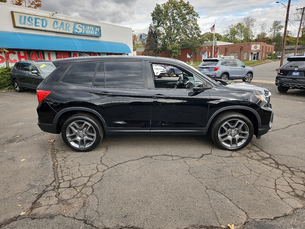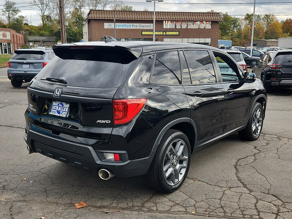 "Black 2022 Honda Passport EX-L 3.5L V6 24V SOHC i-VTEC 9-Speed Automatic AWD4-Wheel Disc Brakes 4.334 Axle Ratio 7 Speakers A/V remote: CabinControl ABS brakes Air Conditioning Alloy wheels AM/FM radio: SiriusXM Apple CarPlay/Android Auto Auto High-beam Headlights Auto-dimming Rear-View mirror Automatic temperature control Blind Spot Information (BSI) System warning Brake assist Bumpers: body-color Delay-off headlights Driver door bin Driver vanity mirror Driver's Seat Mounted Armrest Dual front impact airbags Dual front side impact airbags Electronic Stability Control Emergency communication system: HondaLink Assist Exterior Parking Camera Rear Forward collision: Collision Mitigation Braking System (CMBS) + FCW mitigation Four wheel independent suspension Front anti-roll bar Front Bucket Seats Front Center Armrest Front dual zone A/C Front reading lights Fully automatic headlights Garage door transmitter: HomeLink Heated door mirrors Heated Front Bucket Seats Heated front seats Illuminated entry Lane departure: Lane Keeping Assist System (LKAS) active Leather-Trimmed Seats Low tire pressure warning Memory seat Occupant sensing airbag Outside temperature display Overhead airbag Overhead console Panic alarm Passenger door bin Passenger seat mounted armrest Passenger vanity mirror Power door mirrors Power driver seat Power Liftgate Power moonroof Power passenger seat Power steering Power windows Radio data system Radio: 215-Watt Audio System w/7 Speakers Rear air conditioning Rear anti-roll bar Rear reading lights Rear seat center armrest Rear window defroster Rear window wiper Remote keyless entry Security system Speed control Speed-sensing steering Split folding rear seat Spoiler Steering wheel mounted audio controls Tachometer Telescoping steering wheel Tilt steering wheel Traction control Trip computer Turn signal indicator mirrors Variably intermittent wipers Wheels: 20""Pewter Gray Alloy. Priced below KBB Fair Purchase Price!Awards: * ALG Residual Value Awards Residual Value AwardsSchaller Auto Group has TWO Used Car Locations: Right off Route 9 in New Britain and Route 9 and the Berlin Turnpike in Berlin. Please call 860-826-2023 to confirm this Vehicle's Location. All of our Pre-Owned Vehicles go through our Comprehensive 125 Point Quality Inspection. Every Schaller pre-owned vehicle comes with warranty coverage! With all budgets in mind we now offer Schaller âValue Carsâ starting at $2995 and include a 30 day satisfaction guarantee and all come with a FREE Carfax Vehicle History Report. The Schaller Auto Group is Family Owned and Operated for Over 65 Years and is known for Selling Top Quality Used Vehicles and Standing behind them After the Sale!"