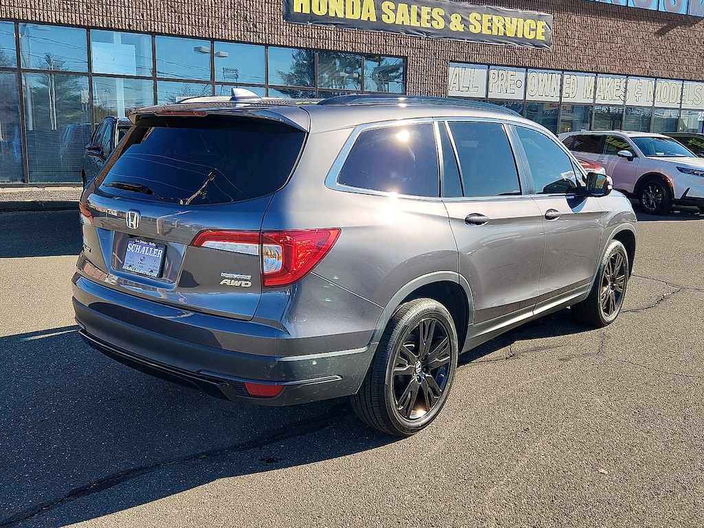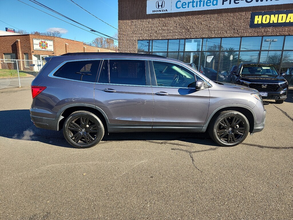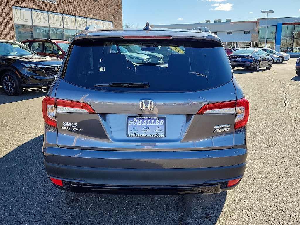 "Gray 2022 Honda Pilot Special Edition 3.5L V6 24V SOHC i-VTEC 9-Speed Automatic AWD3rd row seats: split-bench 4-Wheel Disc Brakes 4.33 Axle Ratio 7 Speakers A/V remote: CabinControl ABS brakes Air Conditioning Alloy wheels AM/FM radio: SiriusXM Apple CarPlay/Android Auto Auto High-beam Headlights Auto-dimming Rear-View mirror Automatic temperature control Blind Spot Information (BSI) System warning Brake assist Bumpers: body-color Delay-off headlights Driver door bin Driver vanity mirror Dual front impact airbags Dual front side impact airbags Electronic Stability Control Emergency communication system: HondaLink Assist Exterior Parking Camera Rear Forward collision: Collision Mitigation Braking System (CMBS) + FCW mitigation Four wheel independent suspension Front anti-roll bar Front Bucket Seats Front Center Armrest Front dual zone A/C Front fog lights Front reading lights Fully automatic headlights Garage door transmitter: HomeLink Heated door mirrors Heated Front Bucket Seats Heated front seats Illuminated entry Lane departure: Lane Keeping Assist System (LKAS) active Leather Seat Trim Low tire pressure warning Memory seat Occupant sensing airbag Outside temperature display Overhead airbag Overhead console Panic alarm Passenger door bin Passenger vanity mirror Power door mirrors Power driver seat Power Liftgate Power moonroof Power passenger seat Power steering Power windows Radio data system Radio: 215-Watt Audio System Rear air conditioning Rear anti-roll bar Rear reading lights Rear seat center armrest Rear window defroster Rear window wiper Reclining 3rd row seat Remote keyless entry Roof rack: rails only Security system Speed control Speed-sensing steering Speed-Sensitive Wipers Split folding rear seat Spoiler Steering wheel mounted audio controls Tachometer Telescoping steering wheel Tilt steering wheel Traction control Trip computer Turn signal indicator mirrors Variably intermittent wipers Wheels: 20""Exclusive Gloss Black Alloy. Priced below KBB Fair Purchase Price! Odometer is 13226 miles below market average! 19/26 City/Highway MPGSchaller Auto Group has TWO Used Car Locations: Right off Route 9 in New Britain and Route 9 and the Berlin Turnpike in Berlin. Please call 860-826-2023 to confirm this Vehicle's Location. All of our Pre-Owned Vehicles go through our Comprehensive 125 Point Quality Inspection. Every Schaller pre-owned vehicle comes with warranty coverage! With all budgets in mind we now offer Schaller âValue Carsâ starting at $2995 and include a 30 day satisfaction guarantee and all come with a FREE Carfax Vehicle History Report. The Schaller Auto Group is Family Owned and Operated for Over 65 Years and is known for Selling Top Quality Used Vehicles and Standing behind them After the Sale!"