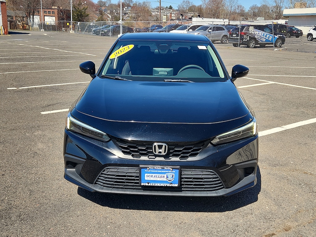 "Crystal Black Pearl 2023 Honda Civic LX 2.0L I4 DOHC 16V CVT FWD16""Alloy Wheels 4 Speakers 4-Wheel Disc Brakes ABS brakes Adaptive Cruise Control: Adaptive Cruise Control (ACC) with Low-Speed Follow Air Conditioning AM/FM radio Apple CarPlay/Android Auto Auto High-beam Headlights Automatic temperature control Brake assist Bumpers: body-color Delay-off headlights Driver door bin Driver vanity mirror Dual front impact airbags Dual front side impact airbags Electronic Stability Control Emergency communication system: HondaLink Exterior Parking Camera Rear Fabric Seating Surfaces Four wheel independent suspension Front anti-roll bar Front Bucket Seats Front Center Armrest Front reading lights Fully automatic headlights Illuminated entry Knee airbag Lane departure: Lane Keeping Assist System (LKAS) active Low tire pressure warning Occupant sensing airbag Outside temperature display Overhead airbag Panic alarm Passenger door bin Passenger vanity mirror Power door mirrors Power steering Power windows Radio data system Radio: 160-Watt Audio System Rear anti-roll bar Rear side impact airbag Rear window defroster Rear window wiper Remote keyless entry Security system Speed control Speed-sensing steering Split folding rear seat Steering wheel mounted audio controls Tachometer Telescoping steering wheel Tilt steering wheel Traction control Trip computer Voltmeter. Priced below KBB Fair Purchase Price! Odometer is 3291 miles below market average! 30/38 City/Highway MPGSchaller Auto Group has TWO Used Car Locations: Right off Route 9 in New Britain and Route 9 and the Berlin Turnpike in Berlin. Please call 860-826-2023 to confirm this Vehicle's Location. All of our Pre-Owned Vehicles go through our Comprehensive 125 Point Quality Inspection. Every Schaller pre-owned vehicle comes with warranty coverage! With all budgets in mind we now offer Schaller âValue Carsâ starting at $2995 and include a 30 day satisfaction guarantee and all come with a FREE Carfax Vehicle History Report. The Schaller Auto Group is Family Owned and Operated for Over 65 Years and is known for Selling Top Quality Used Vehicles and Standing behind them After the Sale!"