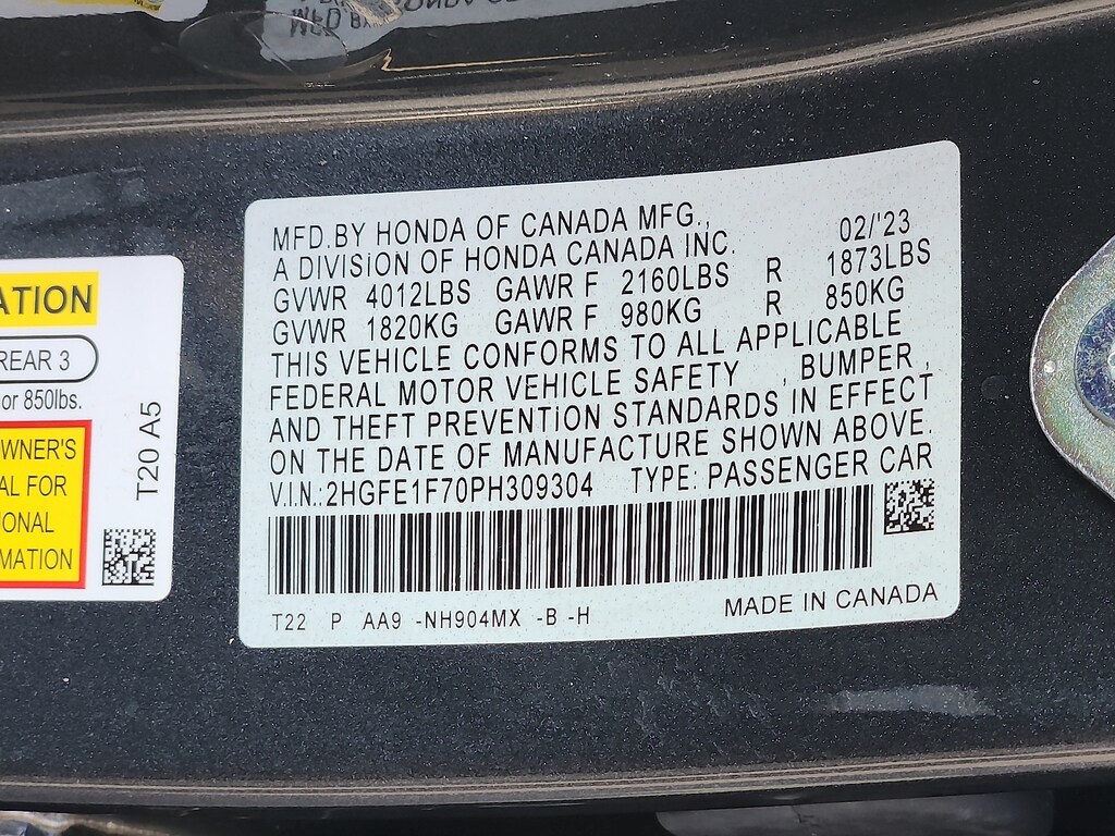 "Meteorite Gray Metallic 2023 Honda Civic EX w/o BSI 1.5L I-4 DI DOHC Turbocharged CVT FWD4-Wheel Disc Brakes 8 Speakers ABS brakes Adaptive Cruise Control: Adaptive Cruise Control (ACC) with Low-Speed Follow Air Conditioning AM/FM radio Apple CarPlay/Android Auto Auto High-beam Headlights Automatic temperature control Brake assist Bumpers: body-color Cloth Seat Trim Delay-off headlights Driver door bin Driver vanity mirror Dual front impact airbags Dual front side impact airbags Electronic Stability Control Emergency communication system: HondaLink Exterior Parking Camera Rear Four wheel independent suspension Front anti-roll bar Front Bucket Seats Front Center Armrest Front dual zone A/C Front reading lights Fully automatic headlights Heated door mirrors Heated Front Bucket Seats Heated front seats Illuminated entry Knee airbag Leather Shift Knob Leather steering wheel Low tire pressure warning Occupant sensing airbag Outside temperature display Overhead airbag Overhead console Panic alarm Passenger door bin Passenger vanity mirror Power door mirrors Power moonroof Power steering Power windows Radio data system Radio: 180-Watt Audio System w/8 Speakers Rear anti-roll bar Rear seat center armrest Rear side impact airbag Rear window defroster Remote keyless entry Security system Speed control Speed-sensing steering Split folding rear seat Steering wheel mounted audio controls Tachometer Telescoping steering wheel Tilt steering wheel Traction control Trip computer Variably intermittent wipers Wheels: 17""Alloy w/Gloss Black Inserts. Priced below KBB Fair Purchase Price! 33/42 City/Highway MPGSchaller Auto Group has TWO Used Car Locations: Right off Route 9 in New Britain and Route 9 and the Berlin Turnpike in Berlin. Please call 860-826-2023 to confirm this Vehicle's Location. All of our Pre-Owned Vehicles go through our Comprehensive 125 Point Quality Inspection. Every Schaller pre-owned vehicle comes with warranty coverage! With all budgets in mind we now offer Schaller âValue Carsâ starting at $2995 and include a 30 day satisfaction guarantee and all come with a FREE Carfax Vehicle History Report. The Schaller Auto Group is Family Owned and Operated for Over 65 Years and is known for Selling Top Quality Used Vehicles and Standing behind them After the Sale!"