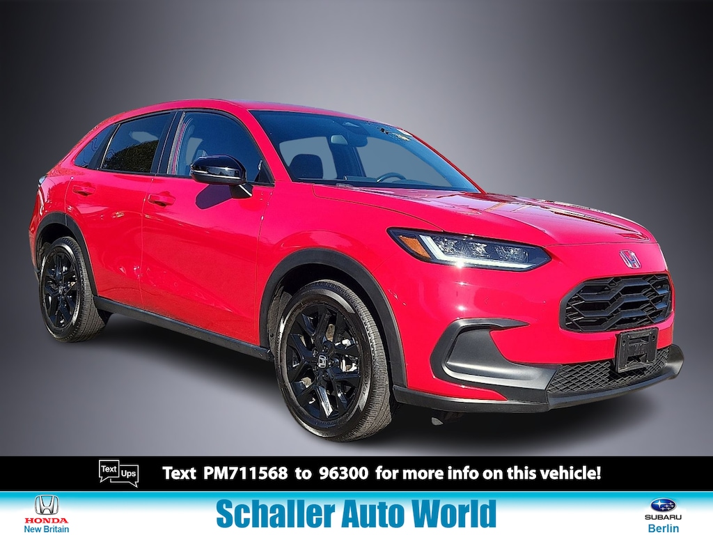 Red 2023 Honda HR-V Sport 2.0L I4 DOHC 16V i-VTEC CVT AWD25/30 City/Highway MPGSchaller Auto Group has TWO Used Car Locations: Right off Route 9 in New Britain and Route 9 and the Berlin Turnpike in Berlin. Please call 860-826-2023 to confirm this Vehicle's Location. All of our Pre-Owned Vehicles go through our Comprehensive 125 Point Quality Inspection. Every Schaller pre-owned vehicle comes with warranty coverage! With all budgets in mind we now offer Schaller âValue Carsâ starting at $2995 and include a 30 day satisfaction guarantee and all come with a FREE Carfax Vehicle History Report. The Schaller Auto Group is Family Owned and Operated for Over 65 Years and is known for Selling Top Quality Used Vehicles and Standing behind them After the Sale!