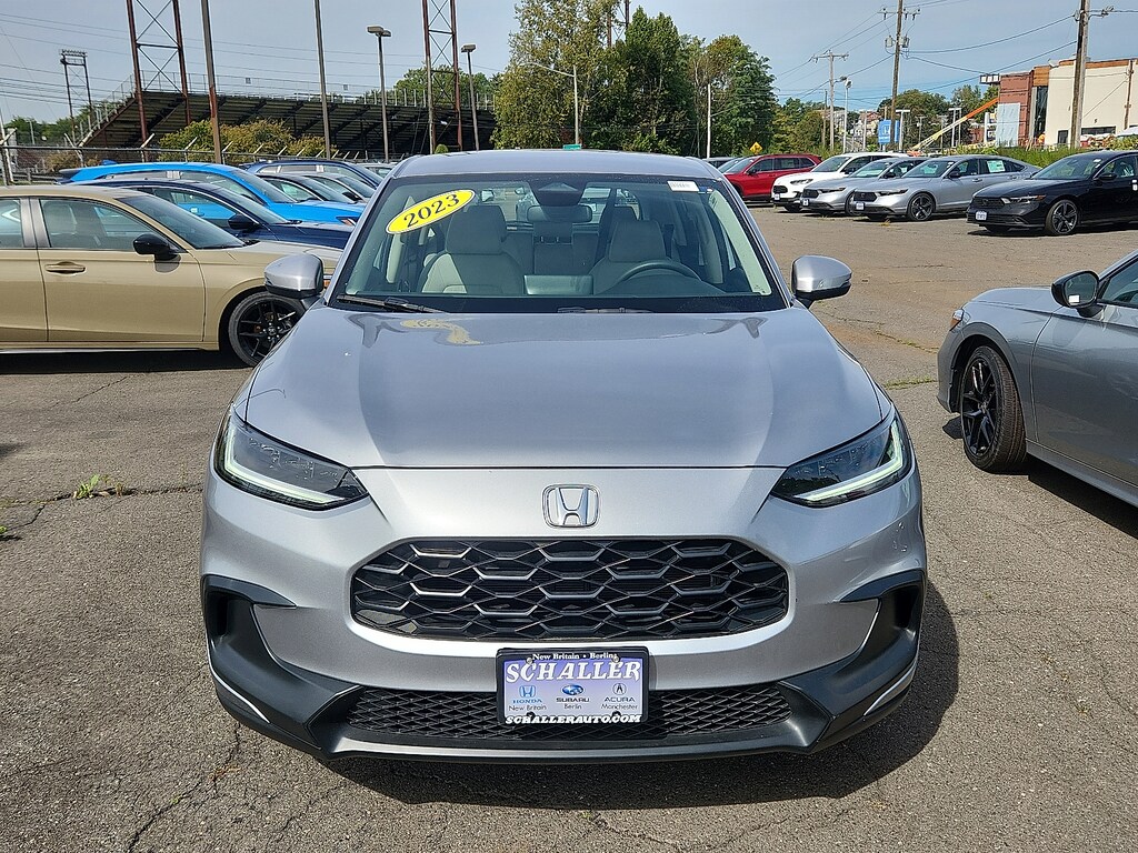 "Silver 2023 Honda HR-V LX 2.0L I4 DOHC 16V i-VTEC CVT AWD4 Speakers 4-Wheel Disc Brakes 5.436 Axle Ratio ABS brakes Adaptive Cruise Control: Adaptive Cruise Control (ACC) with Low-Speed Follow Air Conditioning Alloy wheels AM/FM radio Apple CarPlay/Android Auto Auto High-beam Headlights Automatic temperature control Brake assist Bumpers: body-color Cloth Seat Trim Delay-off headlights Driver door bin Driver vanity mirror Dual front impact airbags Dual front side impact airbags Electronic Stability Control Emergency communication system: HondaLink Exterior Parking Camera Rear Four wheel independent suspension Front anti-roll bar Front Bucket Seats Front Center Armrest Front reading lights Fully automatic headlights Illuminated entry Knee airbag Low tire pressure warning Occupant sensing airbag Outside temperature display Overhead airbag Panic alarm Passenger door bin Passenger vanity mirror Power door mirrors Power steering Power windows Radio data system Radio: 180-Watt Audio System w/4 Speakers Rear anti-roll bar Rear reading lights Rear side impact airbag Rear window defroster Rear window wiper Remote keyless entry Security system Speed control Speed-sensing steering Split folding rear seat Spoiler Steering wheel mounted audio controls Tachometer Telescoping steering wheel Tilt steering wheel Traction control Trip computer Variably intermittent wipers Wheels: 17""Silver Painted Alloy. Odometer is 10512 miles below market average! 25/30 City/Highway MPGSchaller Auto Group has TWO Used Car Locations: Right off Route 9 in New Britain and Route 9 and the Berlin Turnpike in Berlin. Please call 860-826-2023 to confirm this Vehicle's Location. All of our Pre-Owned Vehicles go through our Comprehensive 125 Point Quality Inspection. Every Schaller pre-owned vehicle comes with warranty coverage! With all budgets in mind we now offer Schaller âValue Carsâ starting at $2995 and include a 30 day satisfaction guarantee and all come with a FREE Carfax Vehicle History Report. The Schaller Auto Group is Family Owned and Operated for Over 65 Years and is known for Selling Top Quality Used Vehicles and Standing behind them After the Sale!"