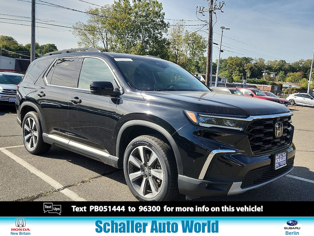 "Black 2023 Honda Pilot Elite 3.5L V6 DOHC 24V 10-Speed Automatic AWD12 Speakers 3rd row seats: split-bench 4-Wheel Disc Brakes ABS brakes Adaptive Cruise Control: Adaptive Cruise Control (ACC) with Low-Speed Follow Air Conditioning Alloy wheels AM/FM radio: SiriusXM Apple CarPlay/Android Auto Auto High-beam Headlights Auto-dimming door mirrors Auto-dimming Rear-View mirror Automatic temperature control Axle Ratio: 4.167 Blind Spot Information (BSI) System warning Bose Premium Sound System Brake assist Bumpers: body-color Compass Delay-off headlights Driver door bin Driver vanity mirror Dual front impact airbags Dual front side impact airbags Electronic Stability Control Emergency communication system: HondaLink Four wheel independent suspension Front anti-roll bar Front Bucket Seats Front Center Armrest Front dual zone A/C Front fog lights Front reading lights Fully automatic headlights Garage door transmitter: HomeLink Heads-Up Display Heated & Ventilated Front Bucket Seats Heated door mirrors Heated front seats Heated rear seats Heated steering wheel Illuminated entry Knee airbag Lane departure: Lane Keeping Assist System (LKAS) active Low tire pressure warning Memory seat Navigation system: Honda Satellite-Linked Navigation System Occupant sensing airbag Outside temperature display Overhead airbag Overhead console Panic alarm Passenger door bin Passenger vanity mirror Perforated Leather Seat Trim Power door mirrors Power driver seat Power Liftgate Power moonroof Power passenger seat Power steering Power windows Radio data system Rain sensing wipers Rear air conditioning Rear anti-roll bar Rear reading lights Rear seat center armrest Rear window defroster Rear window wiper Reclining 3rd row seat Remote keyless entry Security system Speed control Speed-sensing steering Speed-Sensitive Wipers Split folding rear seat Spoiler Steering wheel mounted audio controls Tachometer Telescoping steering wheel Tilt steering wheel Traction control Trip computer Turn signal indicator mirrors Variably intermittent wipers Ventilated front seats Wheels: 20""Machine Face Shark Gray w/Blk Lug Nuts. Odometer is 11082 miles below market average!Schaller Auto Group has TWO Used Car Locations: Right off Route 9 in New Britain and Route 9 and the Berlin Turnpike in Berlin. Please call 860-826-2023 to confirm this Vehicle's Location. All of our Pre-Owned Vehicles go through our Comprehensive 125 Point Quality Inspection. Every Schaller pre-owned vehicle comes with warranty coverage! With all budgets in mind we now offer Schaller âValue Carsâ starting at $2995 and include a 30 day satisfaction guarantee and all come with a FREE Carfax Vehicle History Report. The Schaller Auto Group is Family Owned and Operated for Over 65 Years and is known for Selling Top Quality Used Vehicles and Standing behind them After the Sale!"