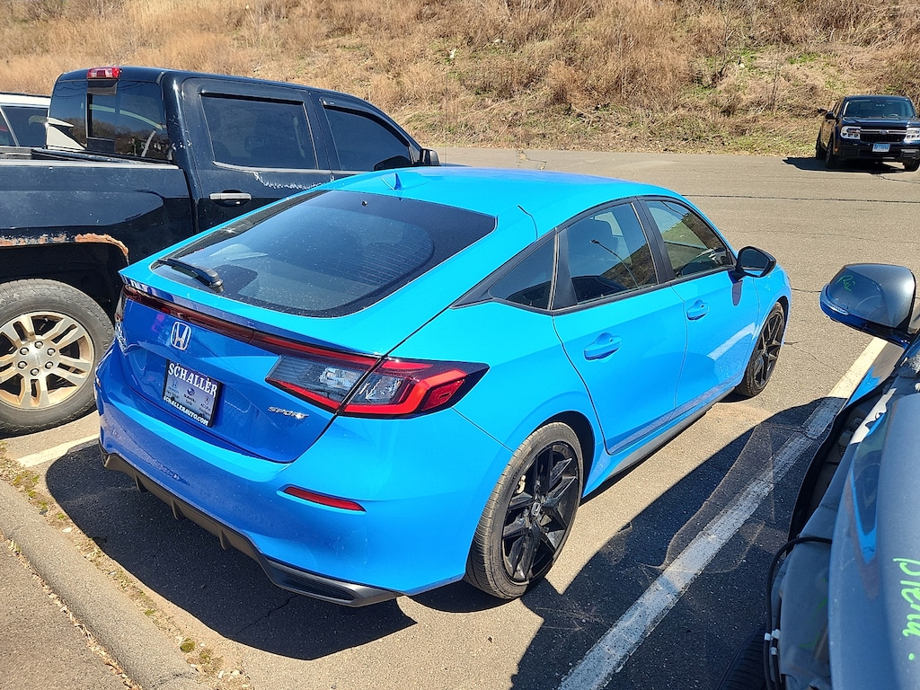 "Boost Blue Pearl 2024 Honda Civic Sport 2.0L I4 DOHC 16V CVT FWD18""Alloy Wheels 4-Wheel Disc Brakes 8 Speakers ABS brakes Adaptive Cruise Control: Adaptive Cruise Control (ACC) with Low-Speed Follow Air Conditioning AM/FM radio Apple CarPlay/Android Auto Auto High-beam Headlights Automatic temperature control Brake assist Bumpers: body-color Cloth/Leatherette Seating Surfaces Delay-off headlights Driver door bin Driver vanity mirror Dual front impact airbags Dual front side impact airbags Electronic Stability Control Emergency communication system: HondaLink Exterior Parking Camera Rear Four wheel independent suspension Front anti-roll bar Front Bucket Seats Front Center Armrest Front reading lights Fully automatic headlights Illuminated entry Knee airbag Lane departure: Lane Keeping Assist System (LKAS) active Leather Shift Knob Leather steering wheel Low tire pressure warning Occupant sensing airbag Outside temperature display Overhead airbag Panic alarm Passenger door bin Passenger vanity mirror Power door mirrors Power steering Power windows Radio data system Radio: 180-Watt Audio System Rear anti-roll bar Rear side impact airbag Rear window defroster Rear window wiper Remote keyless entry Security system Speed control Speed-sensing steering Split folding rear seat Steering wheel mounted audio controls Tachometer Telescoping steering wheel Tilt steering wheel Traction control Trip computer Voltmeter. Priced below KBB Fair Purchase Price! Odometer is 17109 miles below market average! 29/37 City/Highway MPGSchaller Auto Group has TWO Used Car Locations: Right off Route 9 in New Britain and Route 9 and the Berlin Turnpike in Berlin. Please call 860-826-2023 to confirm this Vehicle's Location. All of our Pre-Owned Vehicles go through our Comprehensive 125 Point Quality Inspection. Every Schaller pre-owned vehicle comes with warranty coverage! With all budgets in mind we now offer Schaller âValue Carsâ starting at $2995 and include a 30 day satisfaction guarantee and all come with a FREE Carfax Vehicle History Report. The Schaller Auto Group is Family Owned and Operated for Over 65 Years and is known for Selling Top Quality Used Vehicles and Standing behind them After the Sale!"