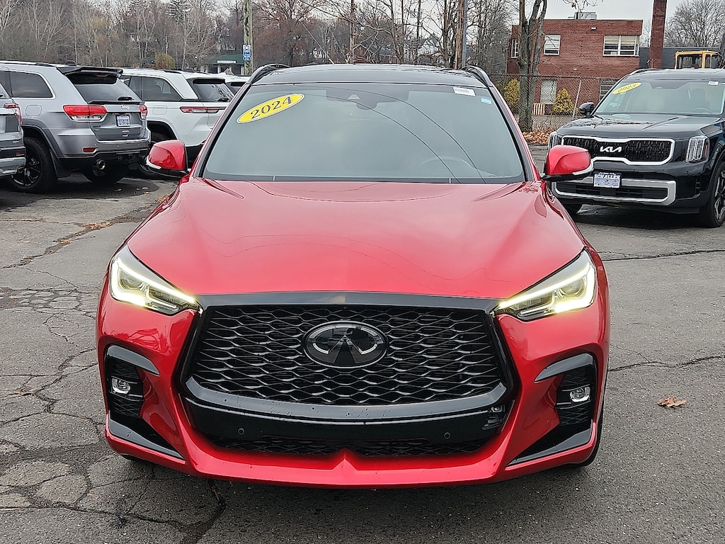 "Dynamic Sunstone Red 2024 INFINITI QX50 SPORT I4 CVT AWD12 Speakers 4-Wheel Disc Brakes 5.846 Axle Ratio ABS brakes Air Conditioning AM/FM radio: SiriusXM Auto High-beam Headlights Auto-dimming Rear-View mirror Automatic temperature control Bose Premium Audio System Brake assist Bumpers: body-color CD player Climate Controlled Front Bucket Seats Delay-off headlights Driver door bin Driver vanity mirror Dual front impact airbags Dual front side impact airbags Electronic Stability Control Emergency communication system: INFINITI InTouch (1-year complimentary trial) Exterior Parking Camera Rear Floor Mats Four wheel independent suspension Front anti-roll bar Front Bucket Seats Front Center Armrest Front dual zone A/C Front fog lights Front reading lights Fully automatic headlights Garage door transmitter: HomeLink Heated door mirrors Heated front seats Heated steering wheel Illuminated entry Illuminated Kick Plates Knee airbag Leather Shift Knob Leather steering wheel Literature Kit Low tire pressure warning Memory seat Navigation system: INFINITI InTouch Navigation Occupant sensing airbag Outside temperature display Overhead airbag Overhead console Panic alarm Passenger door bin Passenger vanity mirror Power door mirrors Power driver seat Power Liftgate Power moonroof Power passenger seat Power steering Power windows Radio data system Rear anti-roll bar Rear reading lights Rear seat center armrest Rear side impact airbag Rear window defroster Rear window wiper Remote keyless entry Security system Semi-Aniline Leather-Appointed Seat Trim Speed control Speed-sensing steering Speed-Sensitive Wipers Splash Guards (Set of 4) Split folding rear seat Spoiler Steering wheel mounted audio controls Tachometer Telescoping steering wheel Tilt steering wheel Traction control Trip computer Turn signal indicator mirrors Variably intermittent wipers Ventilated front seats Wheels: 20""Dark-Painted Machine-Finished Alloy. Priced below KBB Fair Purchase Price! 22/28 City/Highway MPGSchaller Auto Group has TWO Used Car Locations: Right off Route 9 in New Britain and Route 9 and the Berlin Turnpike in Berlin. Please call 860-826-2023 to confirm this Vehicle's Location. All of our Pre-Owned Vehicles go through our Comprehensive 125 Point Quality Inspection. Every Schaller pre-owned vehicle comes with warranty coverage! With all budgets in mind we now offer Schaller âValue Carsâ starting at $2995 and include a 30 day satisfaction guarantee and all come with a FREE Carfax Vehicle History Report. The Schaller Auto Group is Family Owned and Operated for Over 65 Years and is known for Selling Top Quality Used Vehicles and Standing behind them After the Sale!"