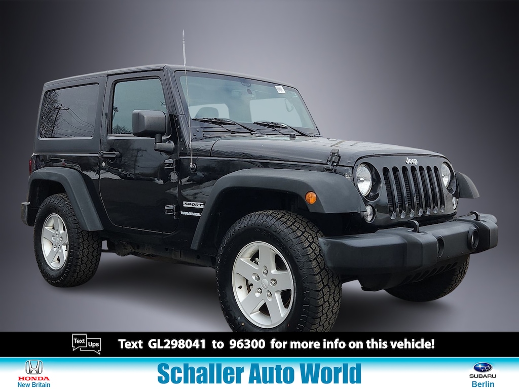 "ABSOLUTE MUST SEE! EVERY MAINTENANCE ITEM HAS BEEN ADDRESSED. 4 BRAND NEW TIRES. NEW FACTORY RADIO. VERY CLEAN ONE-OWNER TRADE. V6. Black Clearcoat 2016 Jeep Wrangler Sport 3.6L V6 24V VVT 5-Speed Automatic 4WDAwards: * 2016 KBB.com 10 Most Awarded Cars * 2016 KBB.com 10 Best SUVs Under $25000 * 2016 KBB.com Best Resale Value Awards * 2016 KBB.com 10 Most Fun SUVs * 2016 KBB.com 10 Coolest New Cars Under $25000Schaller Auto Group has TWO Used Car Locations: Right off Route 9 in New Britain and Route 9 and the Berlin Turnpike in Berlin. Please call 860-826-2023 to confirm this Vehicle's Location. All of our Pre-Owned Vehicles go through our Comprehensive 125 Point Quality Inspection. Every Schaller pre-owned vehicle comes with warranty coverage! With all budgets in mind we now offer Schaller ""Value Cars""starting at $2995 and include a 30 day satisfaction guarantee and all come with a FREE Carfax Vehicle History Report. The Schaller Auto Group is Family Owned and Operated for Over 65 Years and is known for Selling Top Quality Used Vehicles and Standing behind them After the Sale!"