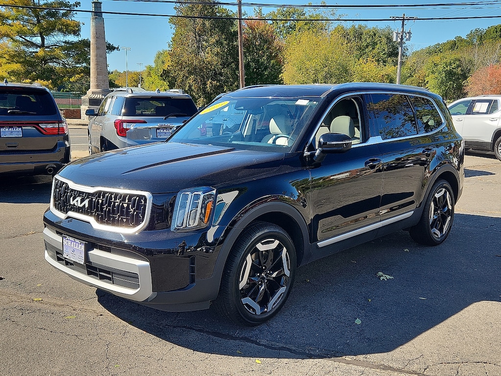 "Ebony Black 2023 Kia Telluride EX 3.8L V6 DGI DOHC Dual CVVT 8-Speed Automatic FWD2nd Row Captain Chairs 3.510 Axle Ratio 3rd row seats: split-bench 4-Wheel Disc Brakes 6 Speakers ABS brakes Air Conditioning Alloy wheels AM/FM radio: SiriusXM Apple CarPlay & Android Auto Auto High-beam Headlights Auto-dimming Rear-View mirror Automatic temperature control Brake assist Bumpers: body-color Carpet Floor Mats Compass Delay-off headlights Driver door bin Driver vanity mirror Dual front impact airbags Dual front side impact airbags Electronic Stability Control Emergency communication system: 911 Connect EX Captain's Chair Package Exterior Parking Camera Rear Four wheel independent suspension Front anti-roll bar Front Bucket Seats Front Center Armrest Front dual zone A/C Front reading lights Fully automatic headlights Heated & Ventilated Front Bucket Seats Heated door mirrors Heated front seats Illuminated entry Knee airbag Leather Seat Trim Leather Shift Knob Leather steering wheel Low tire pressure warning Navigation System Occupant sensing airbag Outside temperature display Overhead airbag Overhead console Panic alarm Passenger door bin Passenger vanity mirror Power door mirrors Power driver seat Power Liftgate Power moonroof Power passenger seat Power steering Power windows Radio data system Radio: AM/FM Display Audio System Rear air conditioning Rear anti-roll bar Rear audio controls Rear reading lights Rear seat center armrest Rear side impact airbag Rear window defroster Rear window wiper Reclining 3rd row seat Remote keyless entry Roof rack: rails only Security system Smart Key w/ Push Button and Remote Start Speed control Speed-sensing steering Split folding rear seat Spoiler Steering wheel mounted audio controls Tachometer Telescoping steering wheel Tilt steering wheel Traction control Trip computer Turn signal indicator mirrors Variably intermittent wipers Ventilated front seats Wheels: 20""x 7.5""Black Finish. Odometer is 3412 miles below market average! 20/26 City/Highway MPGSchaller Auto Group has TWO Used Car Locations: Right off Route 9 in New Britain and Route 9 and the Berlin Turnpike in Berlin. Please call 860-826-2023 to confirm this Vehicle's Location. All of our Pre-Owned Vehicles go through our Comprehensive 125 Point Quality Inspection. Every Schaller pre-owned vehicle comes with warranty coverage! With all budgets in mind we now offer Schaller âValue Carsâ starting at $2995 and include a 30 day satisfaction guarantee and all come with a FREE Carfax Vehicle History Report. The Schaller Auto Group is Family Owned and Operated for Over 65 Years and is known for Selling Top Quality Used Vehicles and Standing behind them After the Sale!"
