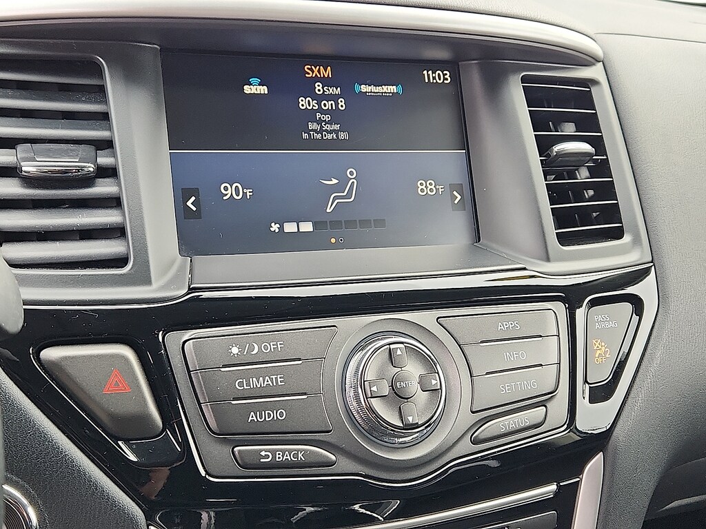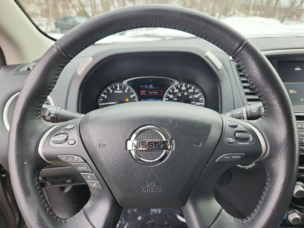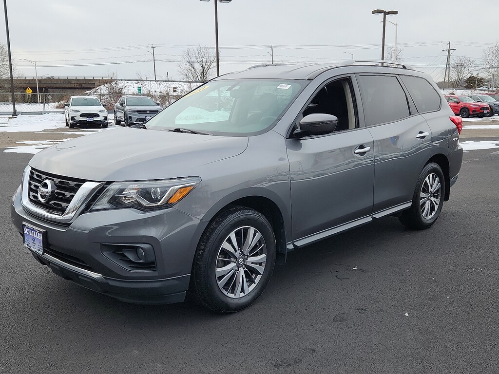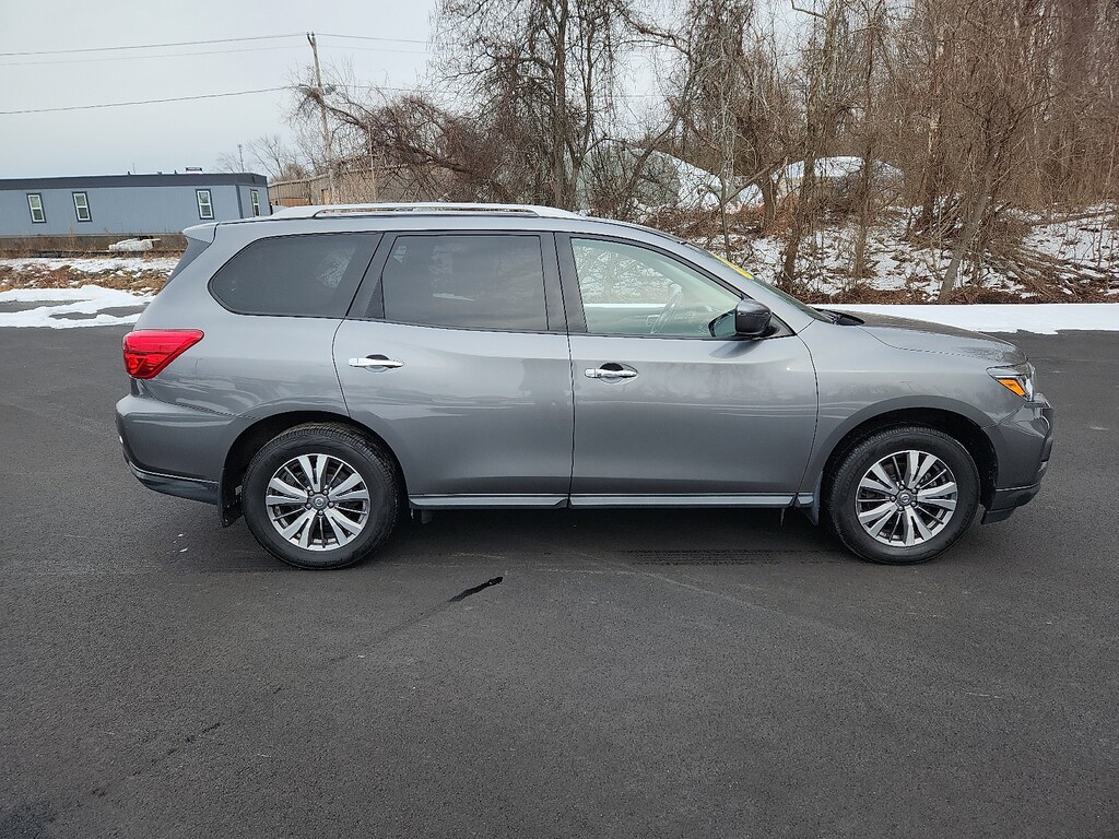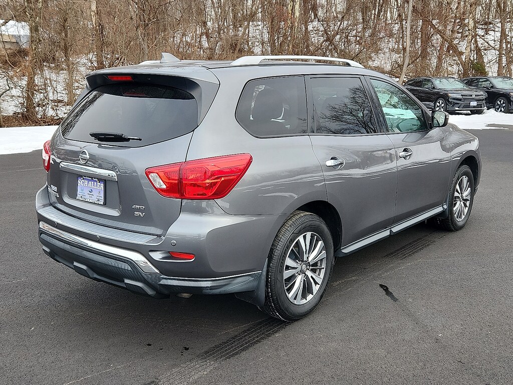"Gun Metallic 2020 Nissan Pathfinder SV V6 CVT with Xtronic 4WD3rd row seats: bench 4-Wheel Disc Brakes 5.25 Axle Ratio 6 Speakers ABS brakes Air Conditioning AM/FM radio: SiriusXM Auto-dimming Rear-View mirror Automatic temperature control Black Mold-in-Color Splash Guards Blind Spot Warning Brake assist Bumpers: body-color Carpeted Floor Mats (4-pc Set) CD player Cloth Seating Surfaces Compass Delay-off headlights Driver door bin Driver vanity mirror Dual front impact airbags Dual front side impact airbags Electronic Stability Control Four wheel independent suspension Front anti-roll bar Front Bucket Seats Front Center Armrest Front dual zone A/C Front fog lights Front reading lights Fully automatic headlights Garage door transmitter: HomeLink Illuminated entry Leather Shift Knob Leather steering wheel Low tire pressure warning Occupant sensing airbag Outside temperature display Overhead airbag Overhead console Panic alarm Passenger door bin Passenger vanity mirror Power door mirrors Power driver seat Power steering Power windows Radio data system Radio: AM/FM/CD Audio System w/NissanConnect Rear air conditioning Rear anti-roll bar Rear Bumper Protector Rear Parking Sensors Rear reading lights Rear seat center armrest Rear window defroster Rear window wiper Reclining 3rd row seat Remote keyless entry Security system Speed control Speed-sensing steering Speed-Sensitive Wipers Split folding rear seat Steering wheel mounted audio controls Tachometer Telescoping steering wheel Tilt steering wheel Traction control Trip computer Turn signal indicator mirrors Variably intermittent wipers Wheels: 18""x 7.5 J Machined Aluminum-Alloy. Odometer is 8347 miles below market average! 20/27 City/Highway MPGSchaller Auto Group has TWO Used Car Locations: Right off Route 9 in New Britain and Route 9 and the Berlin Turnpike in Berlin. Please call 860-826-2023 to confirm this Vehicle's Location. All of our Pre-Owned Vehicles go through our Comprehensive 125 Point Quality Inspection. Every Schaller pre-owned vehicle comes with warranty coverage! With all budgets in mind we now offer Schaller âValue Carsâ starting at $2995 and include a 30 day satisfaction guarantee and all come with a FREE Carfax Vehicle History Report. The Schaller Auto Group is Family Owned and Operated for Over 65 Years and is known for Selling Top Quality Used Vehicles and Standing behind them After the Sale!"