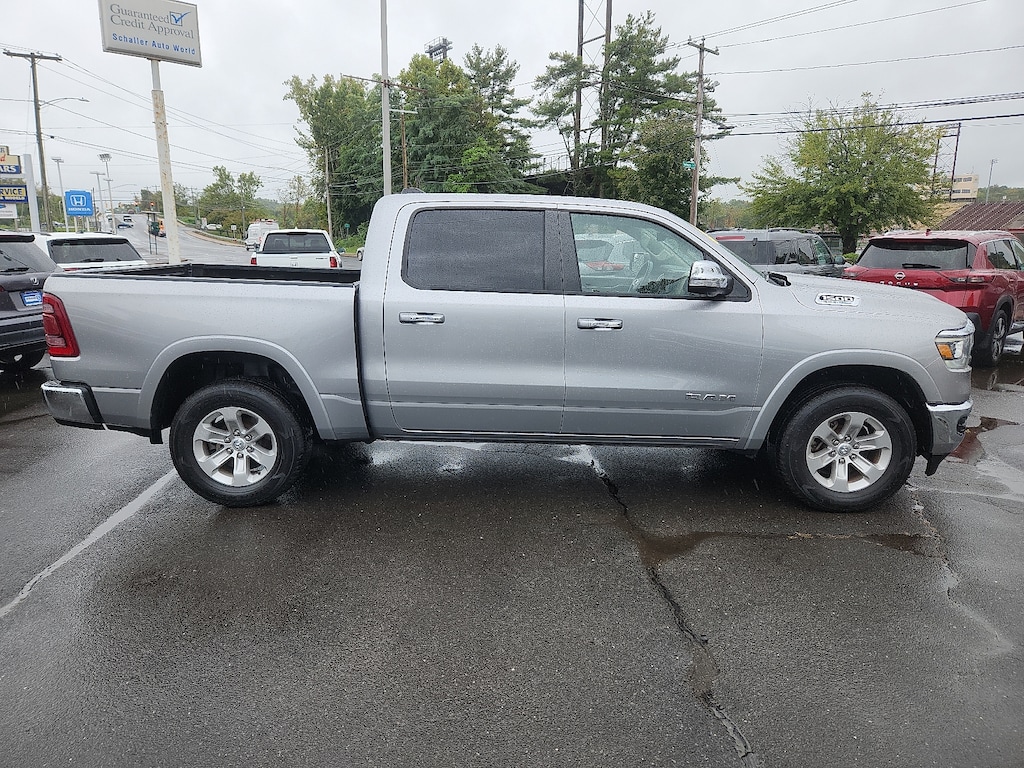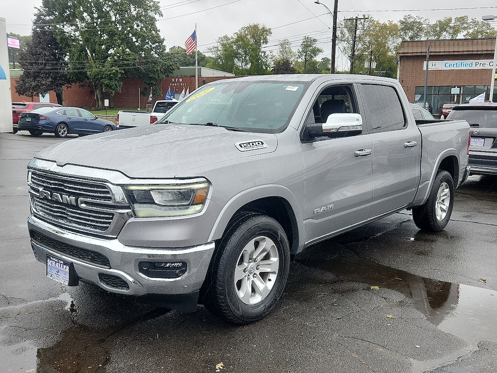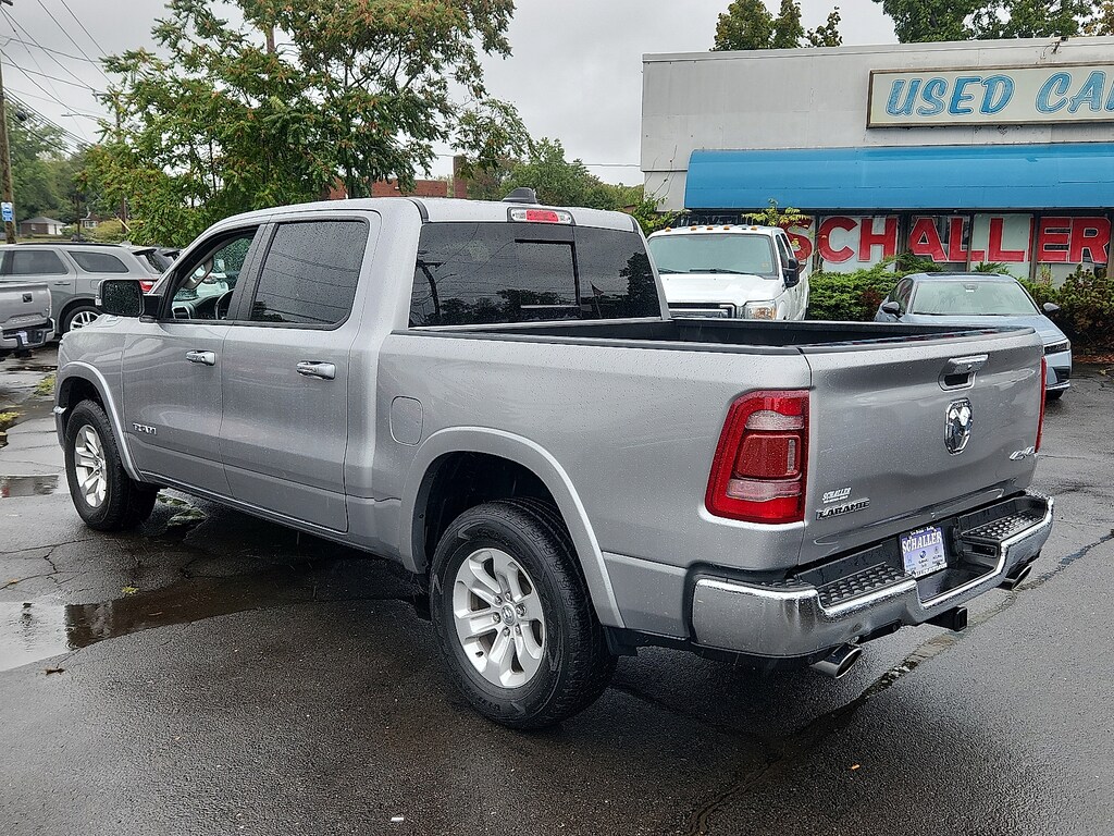 "Billet Silver Metallic Clearcoat 2022 Ram 1500 Laramie HEMI 5.7L V8 Multi Displacement VVT 8-Speed Automatic 4WD#1 Seat Foam Cushion 10 Speakers 2nd Row In Floor Storage Bins 3 Rear Seat Head Restraints 3.21 Rear Axle Ratio 4 Way Front Headrests 4-Wheel Disc Brakes 48V Belt Starter Generator 4G LTE Wi-Fi Hot Spot 8.4""Touchscreen Display ABS brakes Adjustable pedals Air Conditioning Alloy wheels AM/FM radio: SiriusXM Apple CarPlay Apple CarPlay/Android Auto Audio memory Auto High Beam Headlamp Control Auto-dimming door mirrors Auto-Dimming Exterior Driver Mirror Auto-dimming Rear-View mirror Automatic temperature control Blind Spot & Cross Path Detection Brake assist Bumpers: chrome Chrome Exterior Mirrors Compass Connectivity - US/Canada Convex Wide-Angle Mirror Insert Delay-off headlights Driver door bin Driver Seat Memory Driver vanity mirror Dual front impact airbags Dual front side impact airbags Electronic Stability Control Exterior Mirrors Courtesy Lamps Exterior Mirrors w/Heating Element Exterior Mirrors w/Memory Exterior Mirrors w/Supplemental Signals Foam Bottle Insert (Door Trim Panel) For Details Visit DriveUconnect.com Front anti-roll bar Front Center Armrest w/Storage Front dual zone A/C Front fog lights Front License Plate Bracket Front reading lights Front Seat Back Map Pockets Front wheel independent suspension Fully automatic headlights Garage door transmitter Global Telematics Box Module (TBM) Google Android Auto GPS Antenna Input Heated door mirrors Heated Front Seats Heated front seats Heated Steering Wheel Heated steering wheel Heavy-Duty Engine Cooling Illuminated entry Integrated Center Stack Radio Laramie Level I Equipment Group Leather steering wheel Leather Trim 40/20/40 Bench Seat Low tire pressure warning Memory seat Occupant sensing airbag Outside temperature display Overhead airbag Overhead console Panic alarm ParkSense Front/Rear Park Assist w/Stop ParkView Rear Back-Up Camera Passenger door bin Passenger vanity mirror Pedal memory Power 2-Way Driver Lumbar Adjust Power 2-Way Passenger Lumbar Adjust Power 8-Way Driver & Passenger Seats Power door mirrors Power driver seat Power passenger seat Power steering Power windows Power-Folding Mirrors Quick Order Package 27H Laramie Radio data system Radio: Uconnect 5 W w/8.4""Display Rain Sensitive Windshield Wipers Rear 60/40 Folding Seat Rear anti-roll bar Rear seat center armrest Rear step bumper Rear Underseat Compartment Storage (DISC) Rear Wheelhouse Liners Rear window defroster Remote keyless entry Remote Tailgate Release Security system SiriusXM Radio Service Speed control Split folding rear seat Steering wheel mounted audio controls Tachometer Telescoping steering wheel Tilt steering wheel Traction control Trip computer Turn signal indicator mirrors Variably intermittent wipers Ventilated Front Seats Ventilated front seats Voltmeter Wheels: 18""x 8""Aluminum Base Painted.Schaller Auto Group has TWO Used Car Locations: Right off Route 9 in New Britain and Route 9 and the Berlin Turnpike in Berlin. Please call 860-826-2023 to confirm this Vehicle's Location. All of our Pre-Owned Vehicles go through our Comprehensive 125 Point Quality Inspection. Every Schaller pre-owned vehicle comes with warranty coverage! With all budgets in mind we now offer Schaller âValue Carsâ starting at $2995 and include a 30 day satisfaction guarantee and all come with a FREE Carfax Vehicle History Report. The Schaller Auto Group is Family Owned and Operated for Over 65 Years and is known for Selling Top Quality Used Vehicles and Standing behind them After the Sale!"
