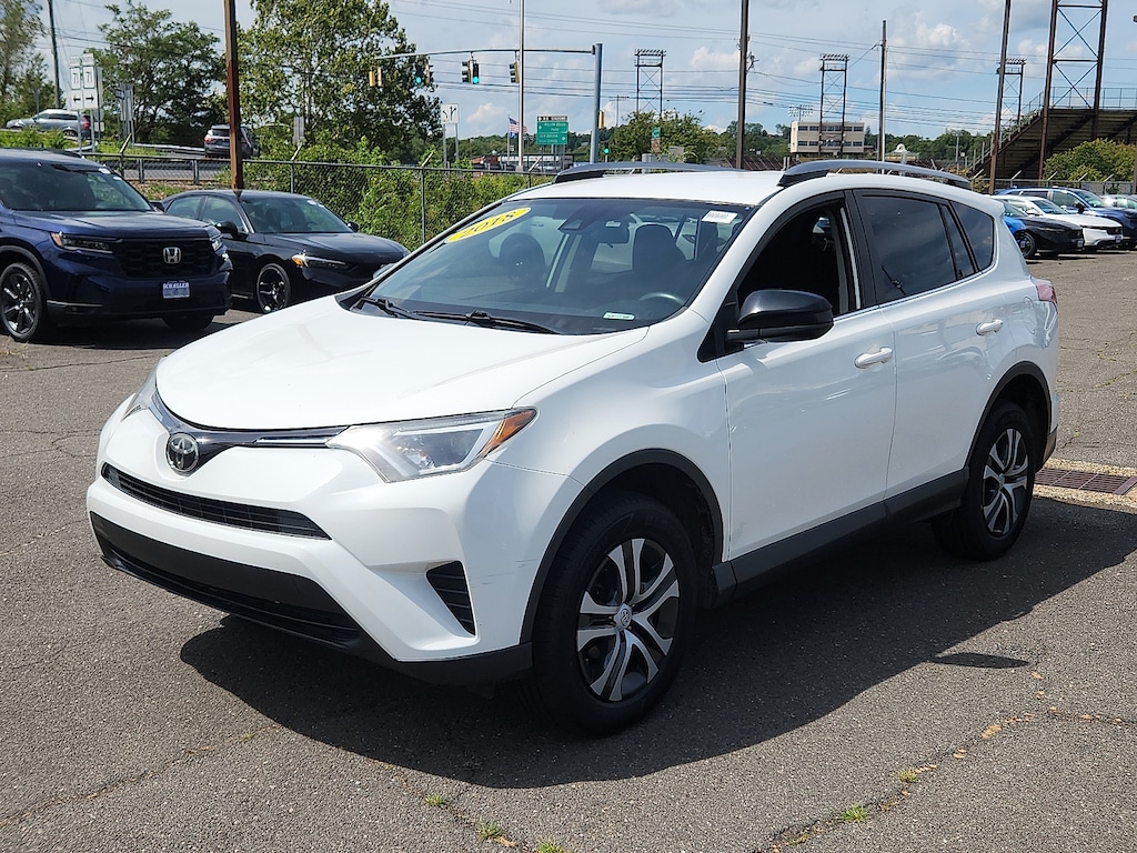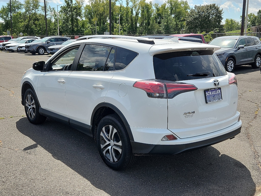 "White 2018 Toyota RAV4 LE 2.5L 4-Cylinder DOHC Dual VVT-i 6-Speed Automatic FWD3.815 Axle Ratio 4-Wheel Disc Brakes 6 Speakers ABS brakes Air Conditioning AM/FM radio Auto High-beam Headlights Brake assist Bumpers: body-color CD player Driver door bin Driver vanity mirror Dual front impact airbags Dual front side impact airbags Electronic Stability Control Exterior Parking Camera Rear Fabric Seat Trim Four wheel independent suspension Front anti-roll bar Front Bucket Seats Front Center Armrest Front reading lights Fully automatic headlights Illuminated entry Knee airbag Low tire pressure warning Occupant sensing airbag Outside temperature display Overhead airbag Overhead console Panic alarm Passenger door bin Passenger vanity mirror Power door mirrors Power steering Power windows Radio data system Radio: Entune AM/FM/CD/MP3/WMA Playback w/6 Speakers Rear anti-roll bar Rear seat center armrest Rear window defroster Rear window wiper Remote keyless entry Speed control Speed-sensing steering Split folding rear seat Spoiler Steering wheel mounted audio controls Tachometer Telescoping steering wheel Tilt steering wheel Traction control Trip computer Wheels: 17""x 6.5J. 23/30 City/Highway MPGAwards: * 2018 KBB.com 10 Best SUVs Under $25000 * 2018 KBB.com 10 Most Awarded Brands * 2018 KBB.com Best Resale Value AwardsSchaller Auto Group has TWO Used Car Locations: Right off Route 9 in New Britain and Route 9 and the Berlin Turnpike in Berlin. Please call 860-826-2023 to confirm this Vehicle's Location. All of our Pre-Owned Vehicles go through our Comprehensive 125 Point Quality Inspection. Every Schaller pre-owned vehicle comes with warranty coverage! With all budgets in mind we now offer Schaller âValue Carsâ starting at $2995 and include a 30 day satisfaction guarantee and all come with a FREE Carfax Vehicle History Report. The Schaller Auto Group is Family Owned and Operated for Over 65 Years and is known for Selling Top Quality Used Vehicles and Standing behind them After the Sale!"