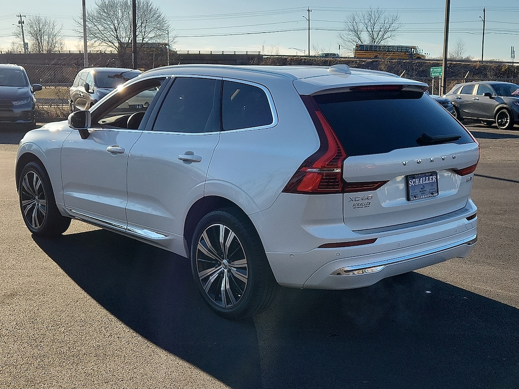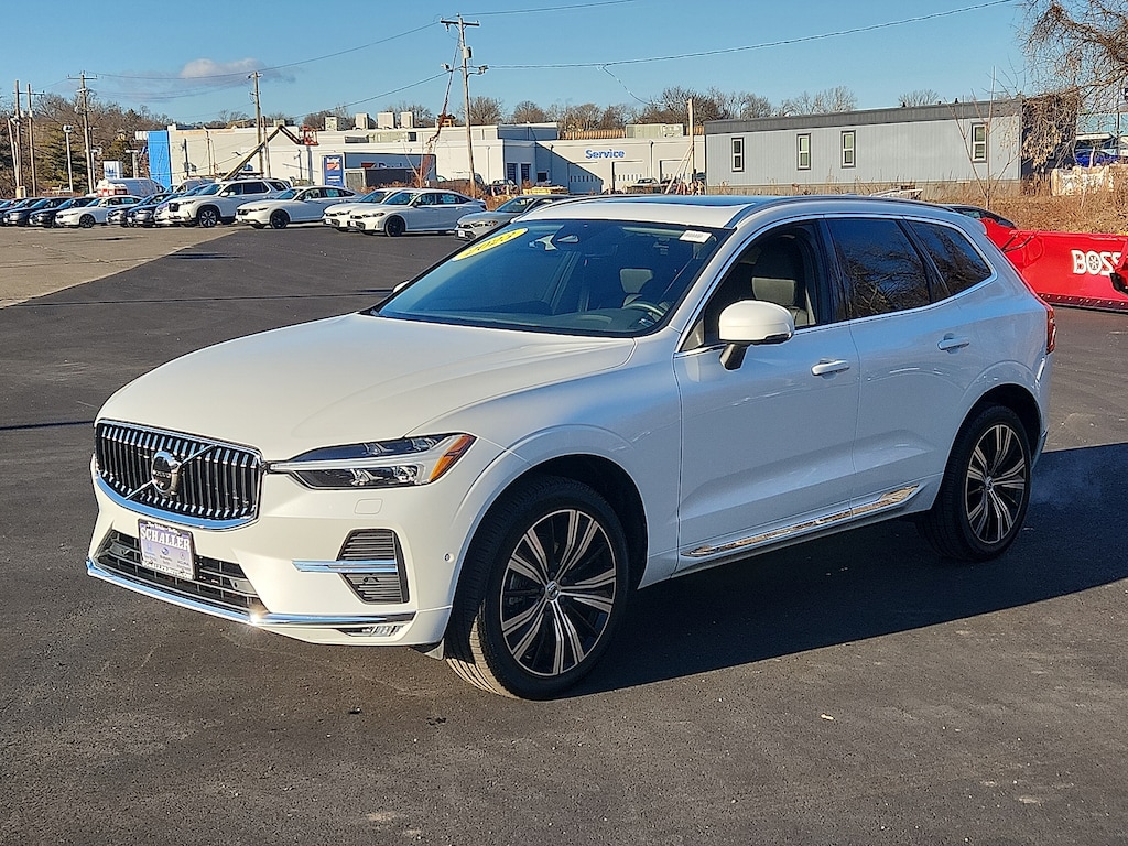 "Crystal White Metallic 2023 Volvo XC60 B5 Plus Bright Theme 2.0L I4 Turbocharged Automatic with Geartronic AWD10 Speakers 4-Wheel Disc Brakes ABS brakes Air Conditioning AM/FM radio: SiriusXM Anti-whiplash front head restraints Apple CarPlay Auto High-beam Headlights Auto-dimming door mirrors Auto-dimming Rear-View mirror Automatic temperature control Brake assist Bumpers: body-color Delay-off headlights Driver door bin Driver vanity mirror Dual front impact airbags Dual front side impact airbags Electronic Stability Control Emergency communication system: Volvo Cars App w/4 Year Subscription Exterior Parking Camera Rear Four wheel independent suspension Front anti-roll bar Front Bucket Seats Front Center Armrest Front dual zone A/C Front fog lights Front reading lights Fully automatic headlights Garage door transmitter: HomeLink Genuine wood console insert Genuine wood dashboard insert Heated door mirrors Heated Front Bucket Seats Heated front seats Illuminated entry Knee airbag Leather Shift Knob Leather Upholstery Low tire pressure warning Memory seat Occupant sensing airbag Outside temperature display Overhead airbag Panic alarm Passenger door bin Passenger vanity mirror Power door mirrors Power driver seat Power moonroof Power passenger seat Power steering Power windows Radio data system Radio: High Performance Audio System Rain sensing wipers Rear anti-roll bar Rear fog lights Rear reading lights Rear seat center armrest Rear window defroster Rear window wiper Remote keyless entry Security system Speed control Split folding rear seat Spoiler Steering wheel mounted audio controls Tachometer Telescoping steering wheel Tilt steering wheel Traction control Trip computer Turn signal indicator mirrors Variably intermittent wipers Wheels: 19""5-V Spoke Black Diamond Cut Alloy. Priced below KBB Fair Purchase Price! Odometer is 6620 miles below market average! 23/29 City/Highway MPGSchaller Auto Group has TWO Used Car Locations: Right off Route 9 in New Britain and Route 9 and the Berlin Turnpike in Berlin. Please call 860-826-2023 to confirm this Vehicle's Location. All of our Pre-Owned Vehicles go through our Comprehensive 125 Point Quality Inspection. Every Schaller pre-owned vehicle comes with warranty coverage! With all budgets in mind we now offer Schaller âValue Carsâ starting at $2995 and include a 30 day satisfaction guarantee and all come with a FREE Carfax Vehicle History Report. The Schaller Auto Group is Family Owned and Operated for Over 65 Years and is known for Selling Top Quality Used Vehicles and Standing behind them After the Sale!"
